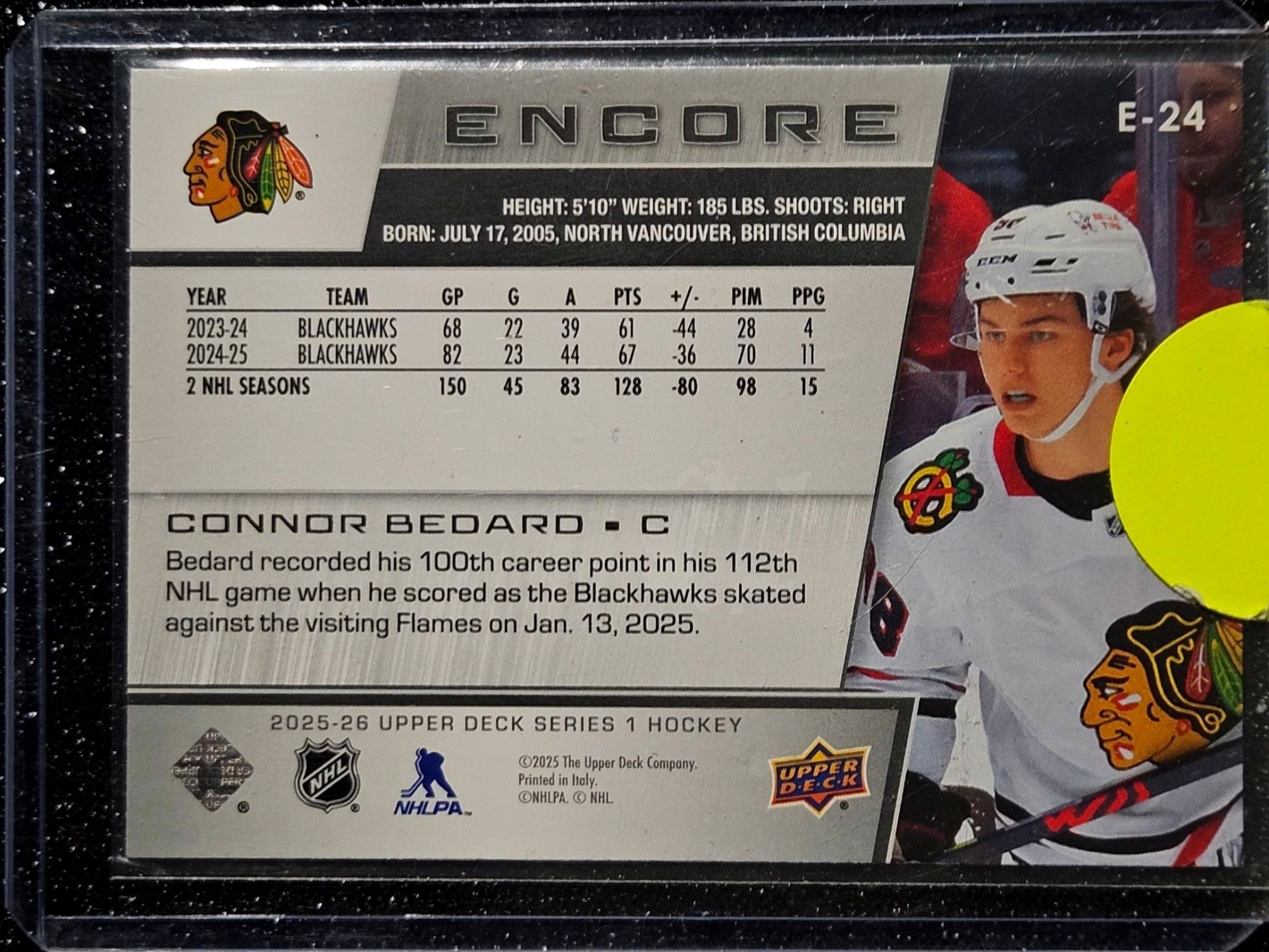 Lot 184 Connor Bedard #E-24 - Upper Deck "Encore" Trading Card