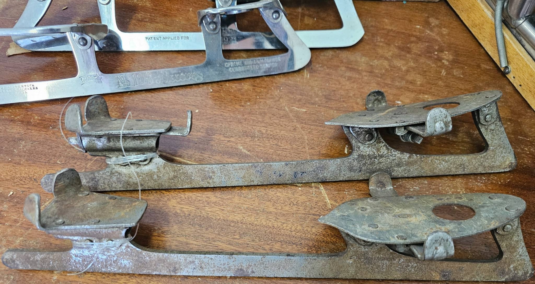 Lot 87 Antique Ice Skates and Accessories Including Vintage Stark Attachments