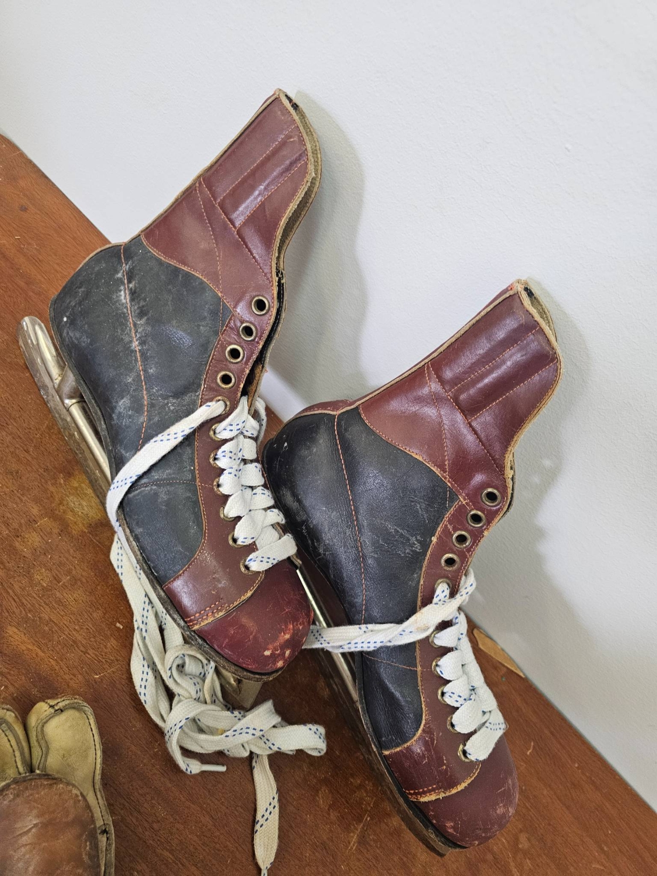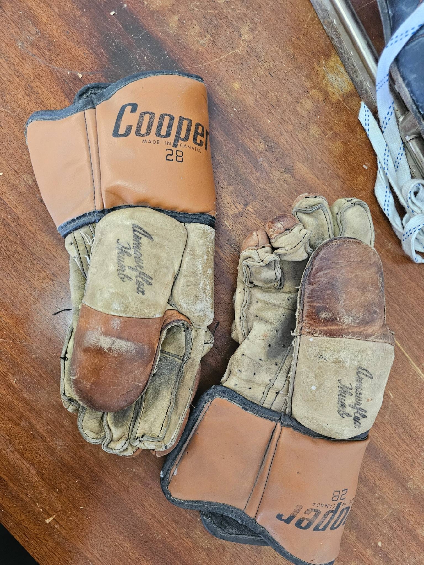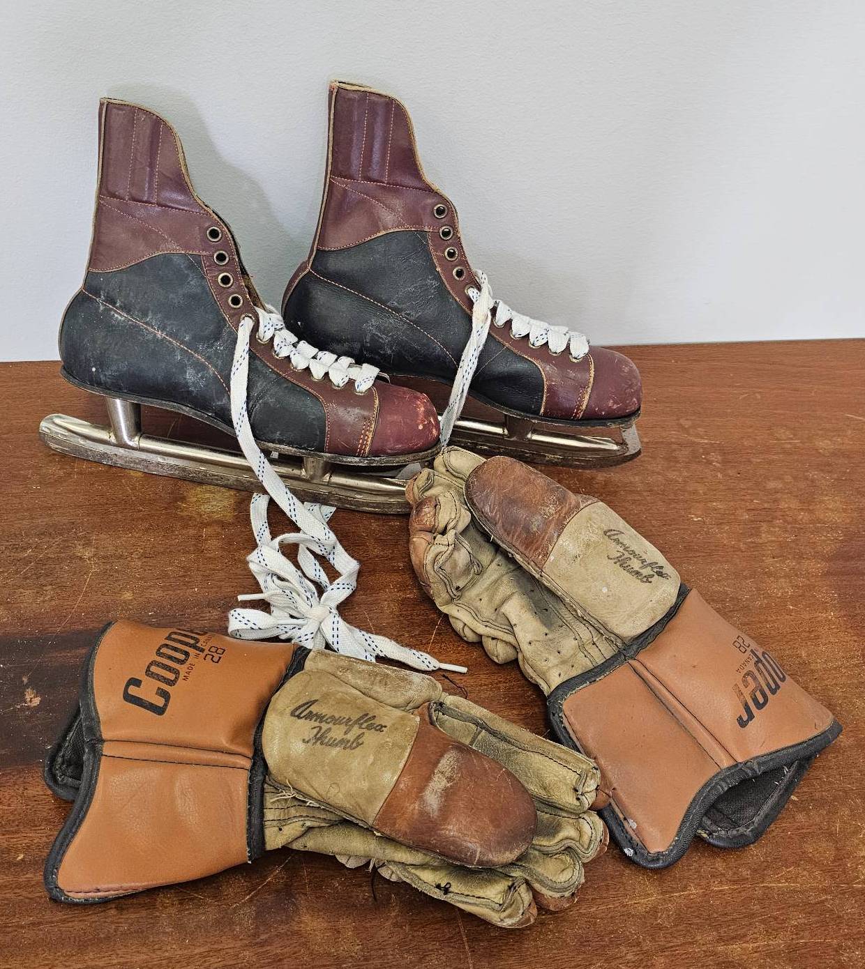 Lot 95 Vintage Leather Ice Hockey Skates and Cooper Gloves Set