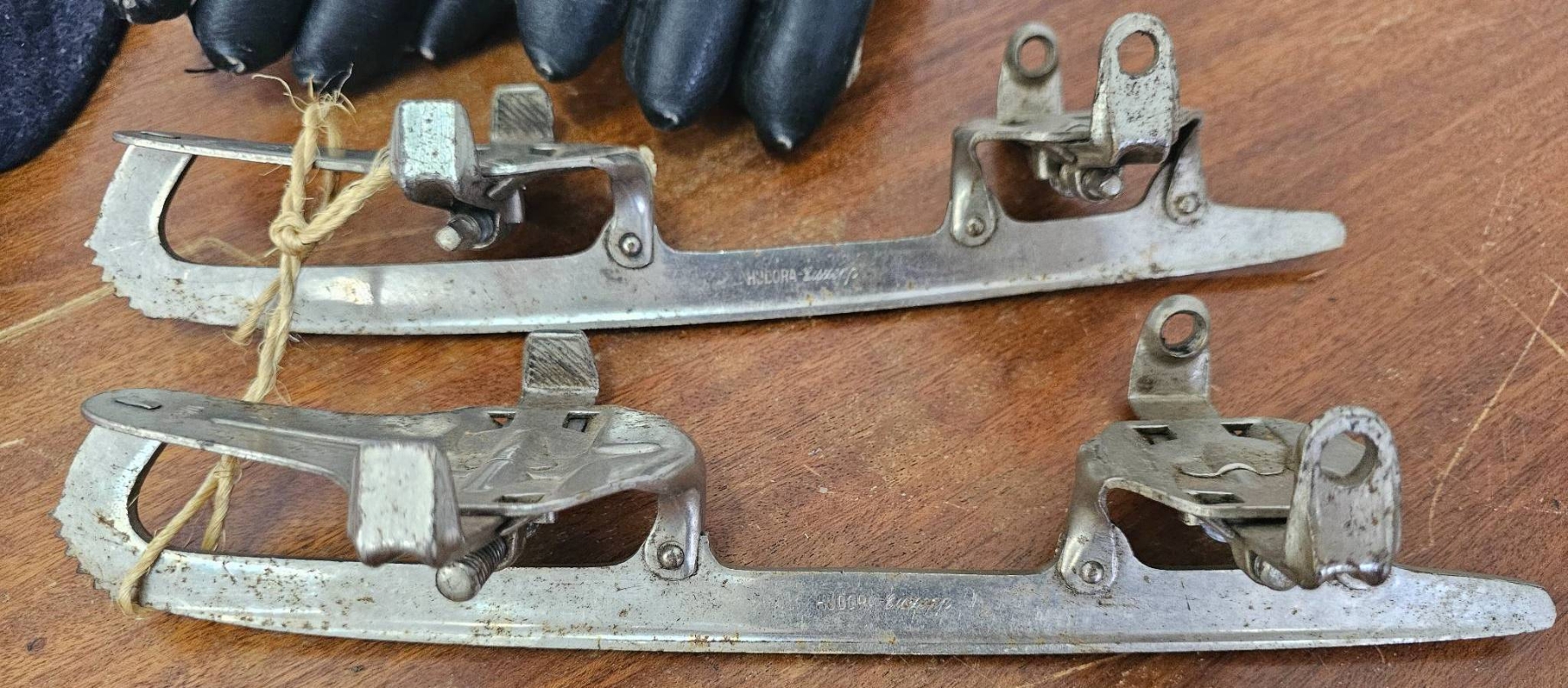 Lot 102 Vintage Hockey Gear Set with Shin Guards, Gloves, and Ice Skate Blades