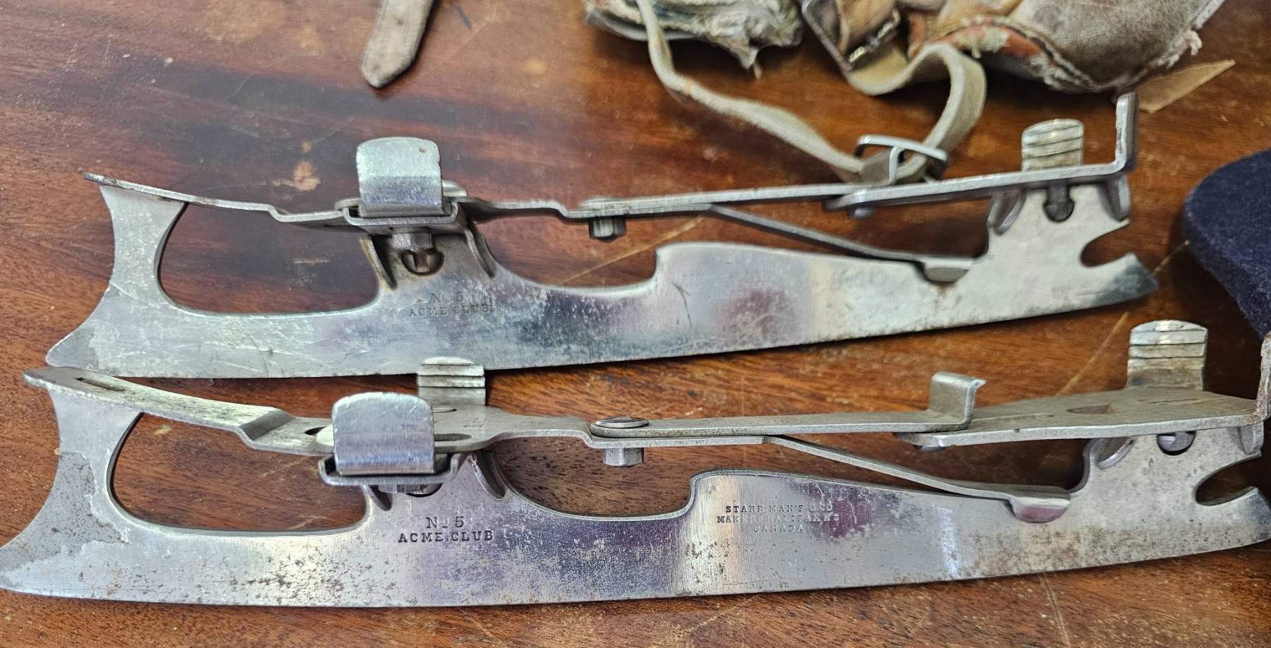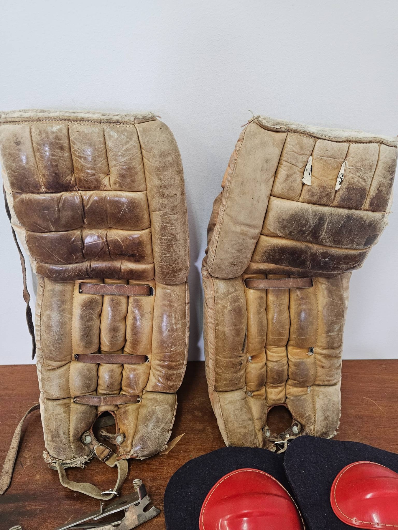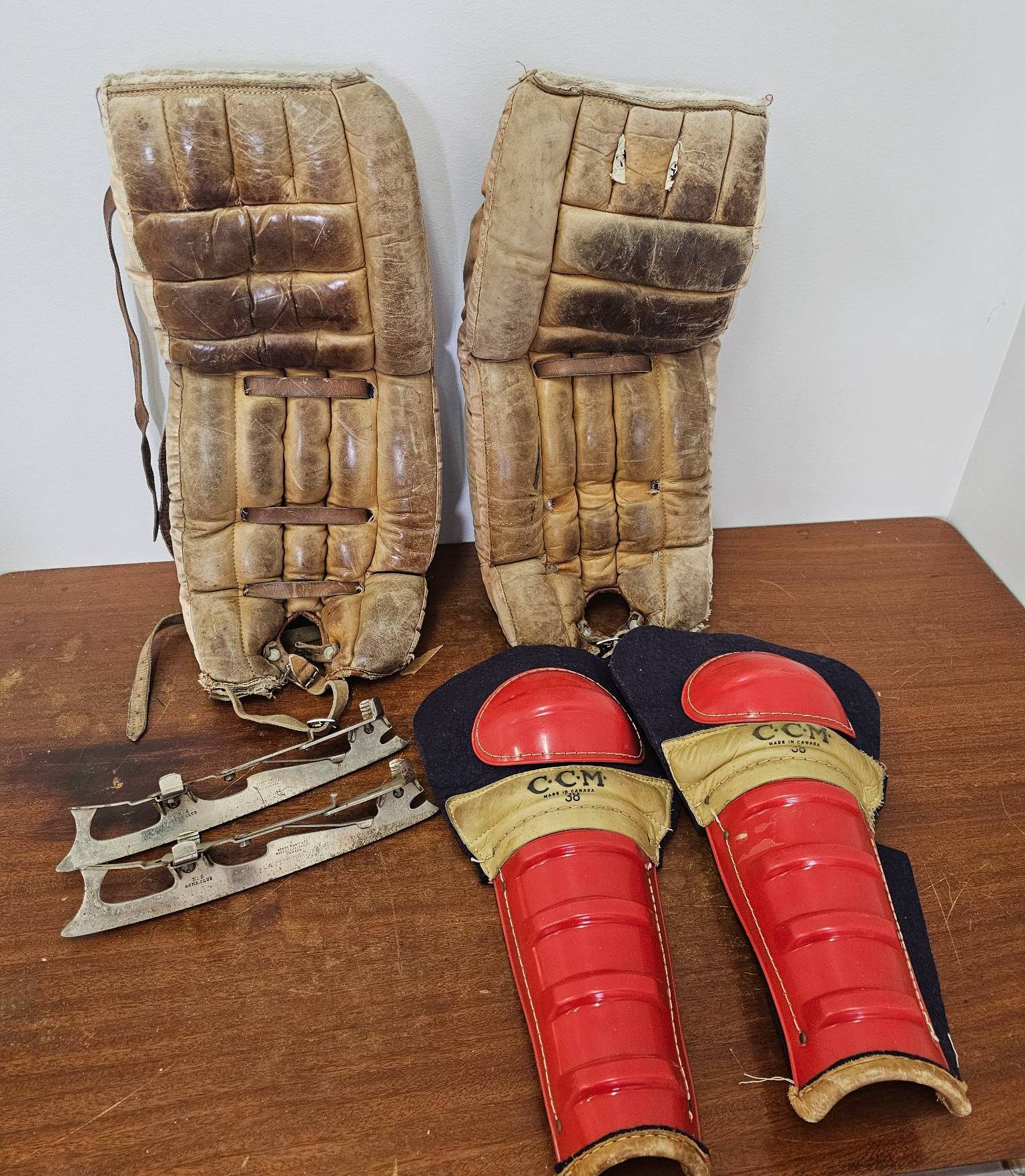 Lot 103 Vintage Hockey Gear, Including CCM Shin Guards and Ice Skate Blades