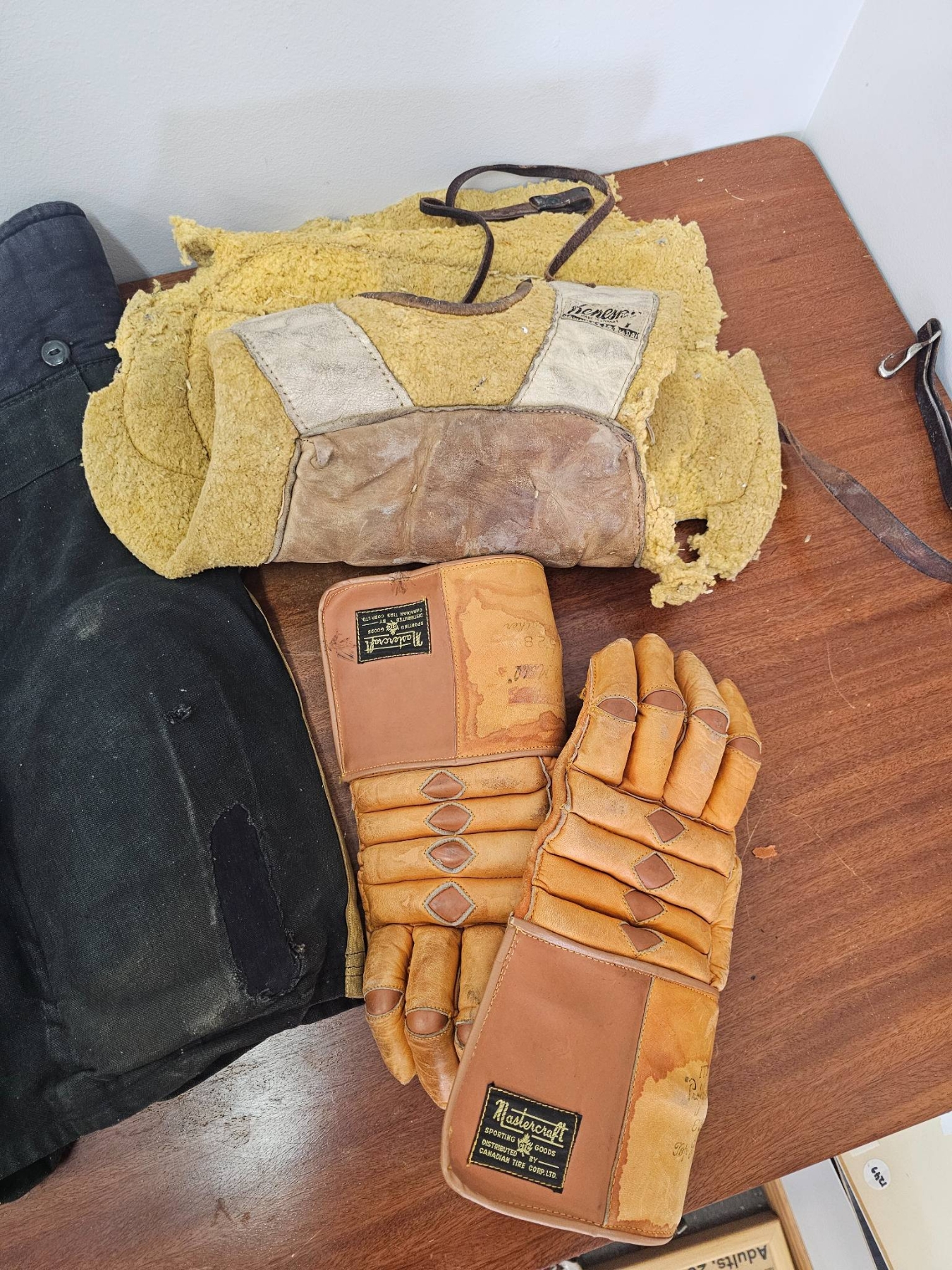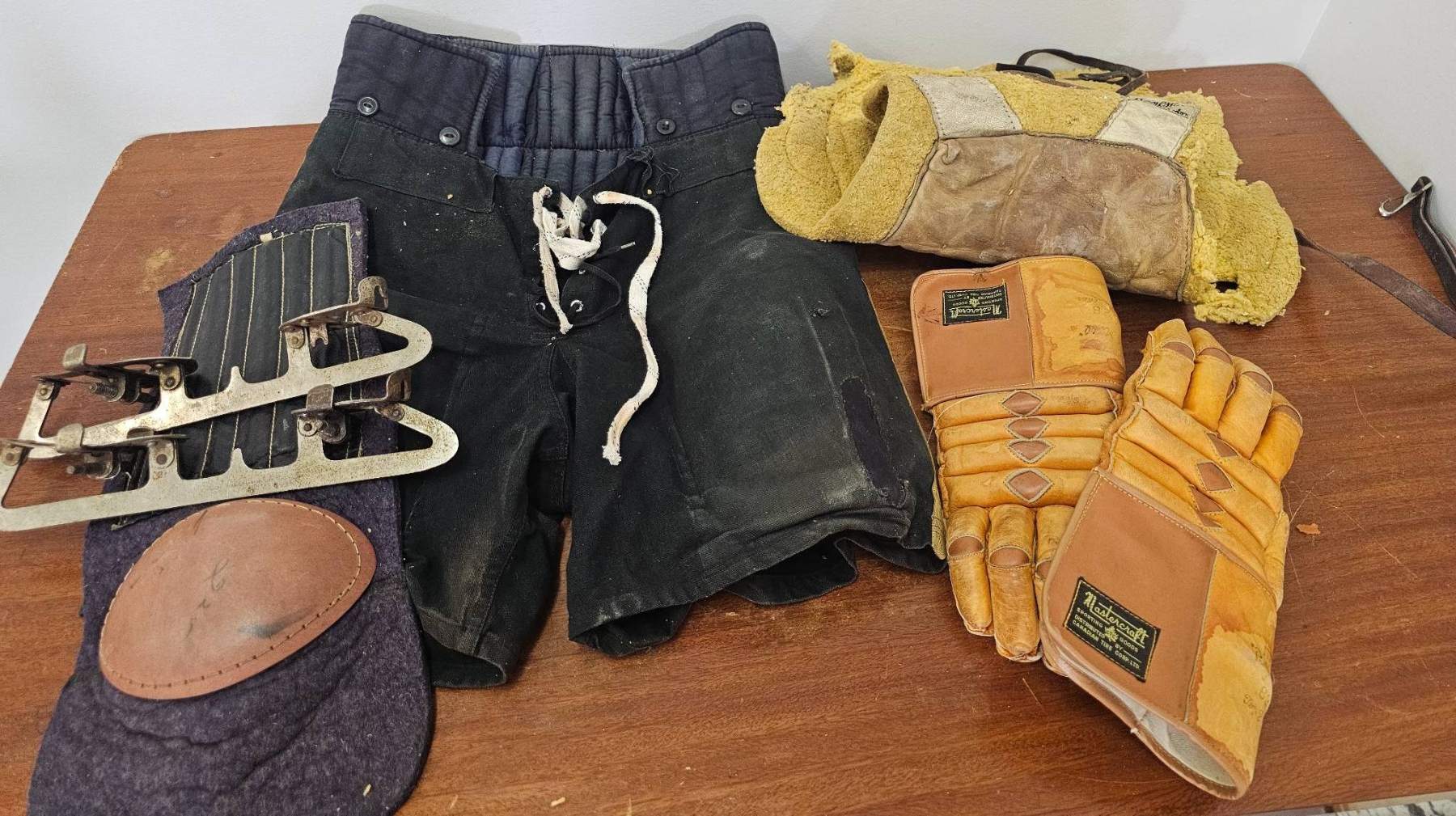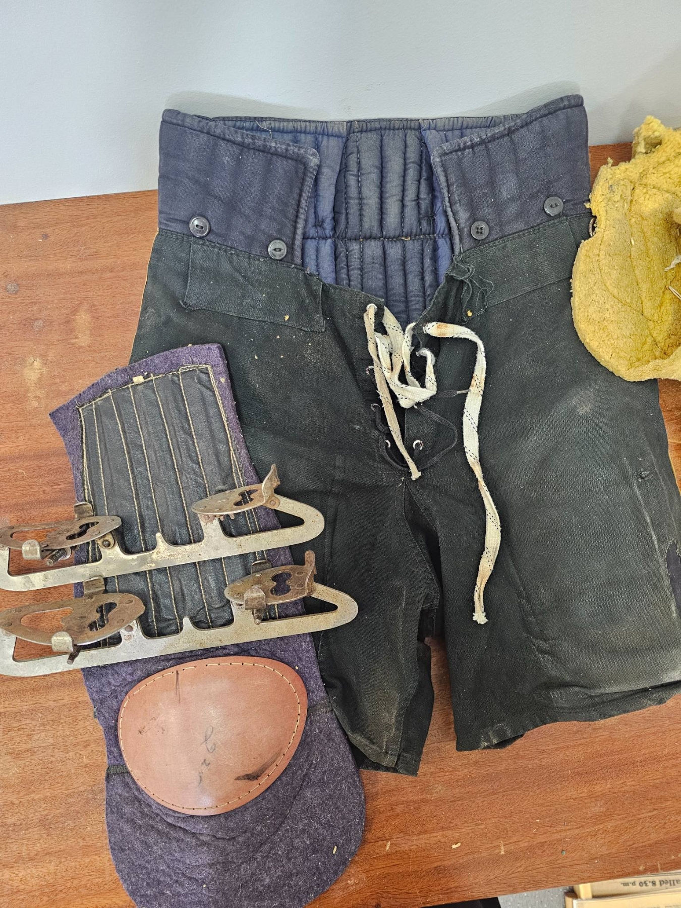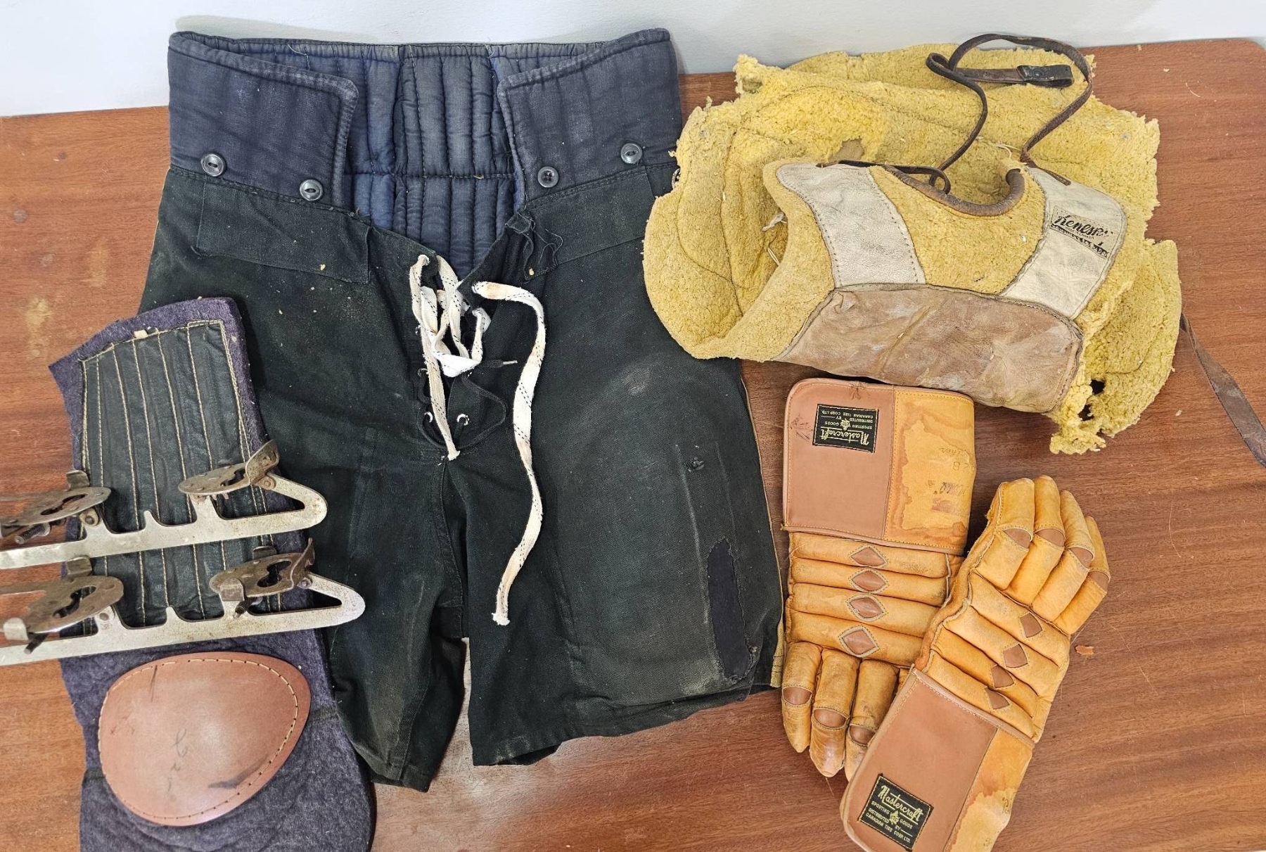 Lot 106 Vintage Hockey Equipment Set Including Pads, Gloves, and Shorts