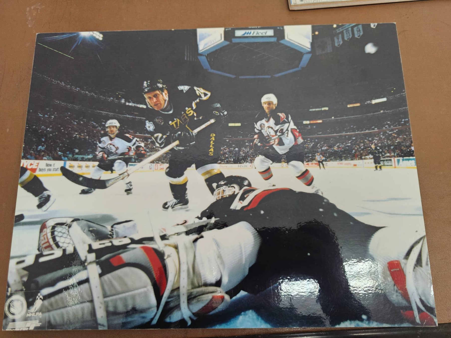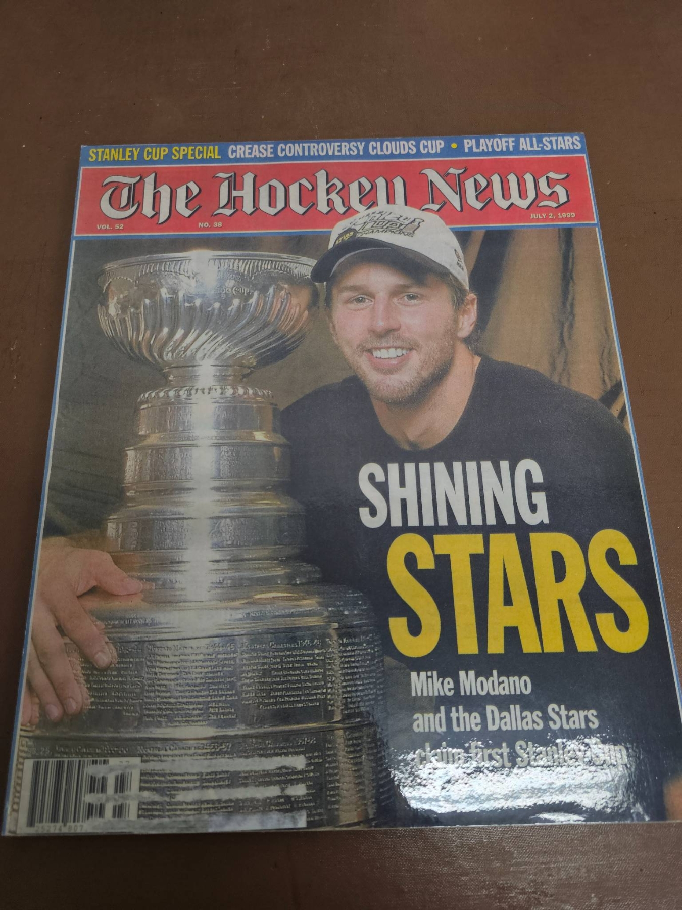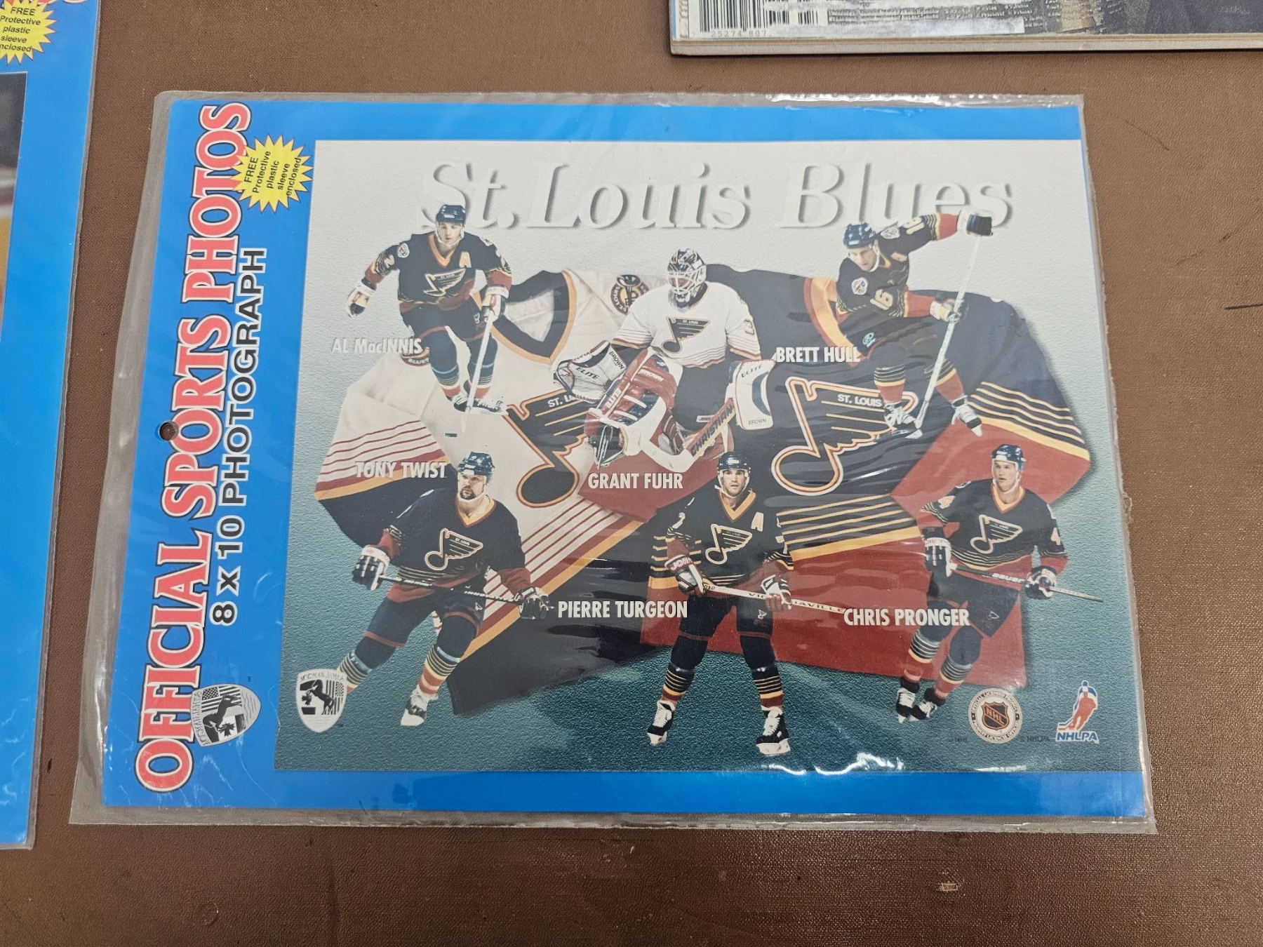 A mix of NHL memorabilia, including multiple official 8x10 photographs of the Dallas Stars and St. Louis Blues players, game action moments, and Stanley Cup celebrations. Highlights include a Hockey News magazine featuring Mike Modano and the Dallas Stars, as well as other keepsakes capturing iconic NHL moments. Perfect for collectors or hockey enthusiasts.