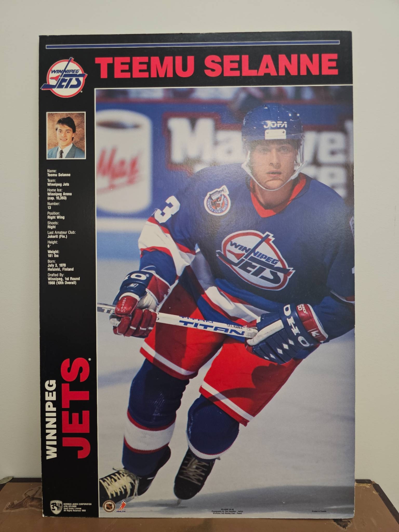 Lot 203 Winnipeg Jets Teemu Selanne Poster, 22" x 33"