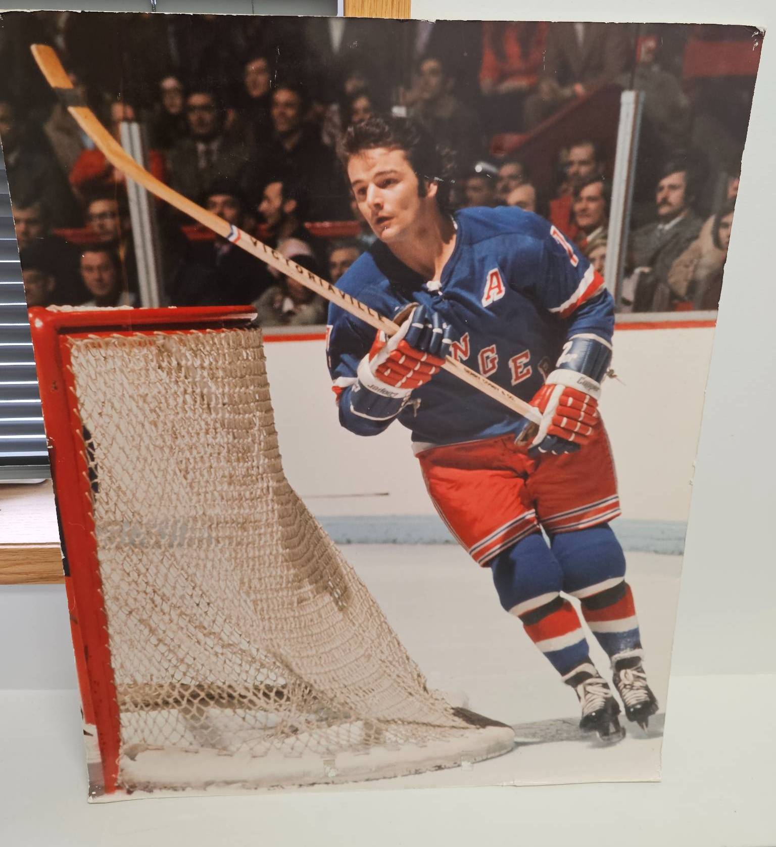 Lot 229 25" x 31" Hockey Photograph Print with New York Rangers Player Behind Net