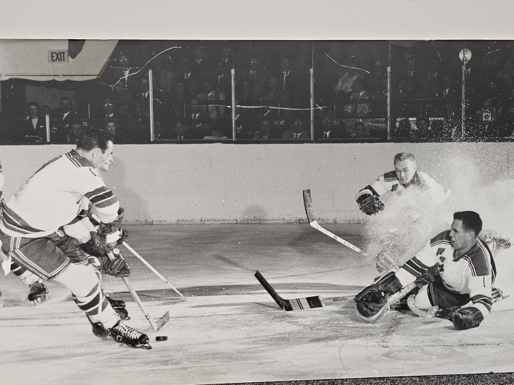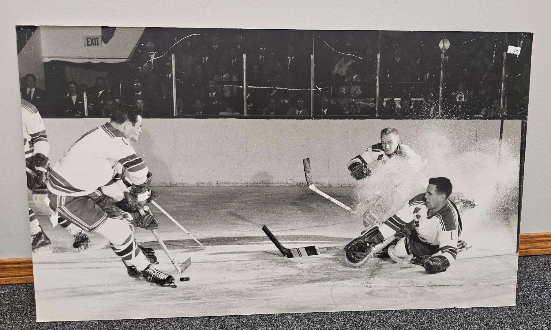 Lot 235 Black-and-White Action Photograph of Hockey Players, 33x19 Inches