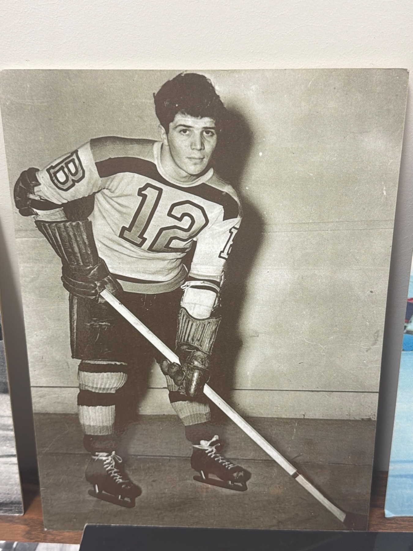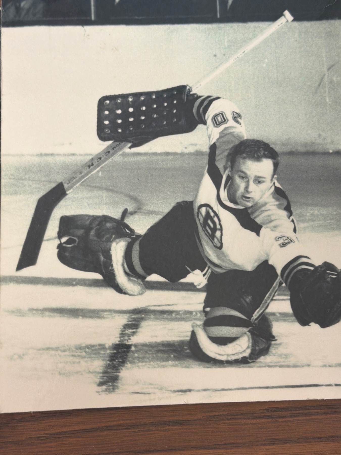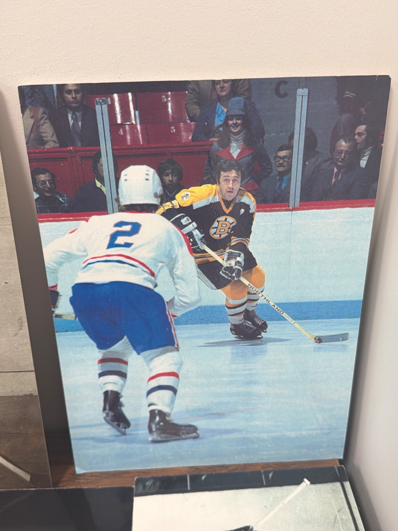 Eight Boston Bruins-themed vintage hockey photographs featuring iconic moments and players. Includes both color and black-and-white prints, showcasing action shots, player portraits, and memorabilia. Ideal for hockey enthusiasts and Bruins fans seeking timeless pieces of the team's history to add to their collection.