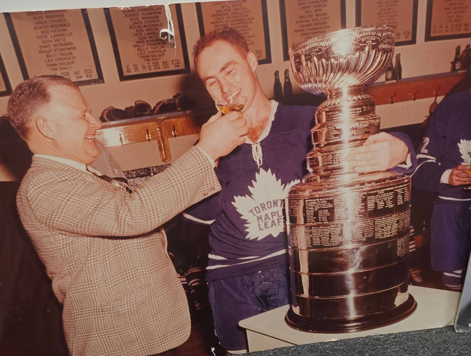 Lot 264 Print of Toronto Maple Leafs Player With Stanley Cup, 36"X 27"