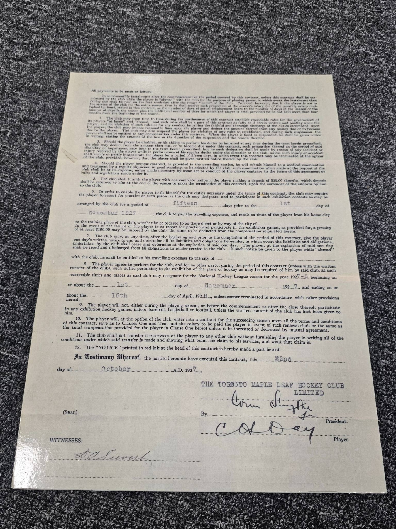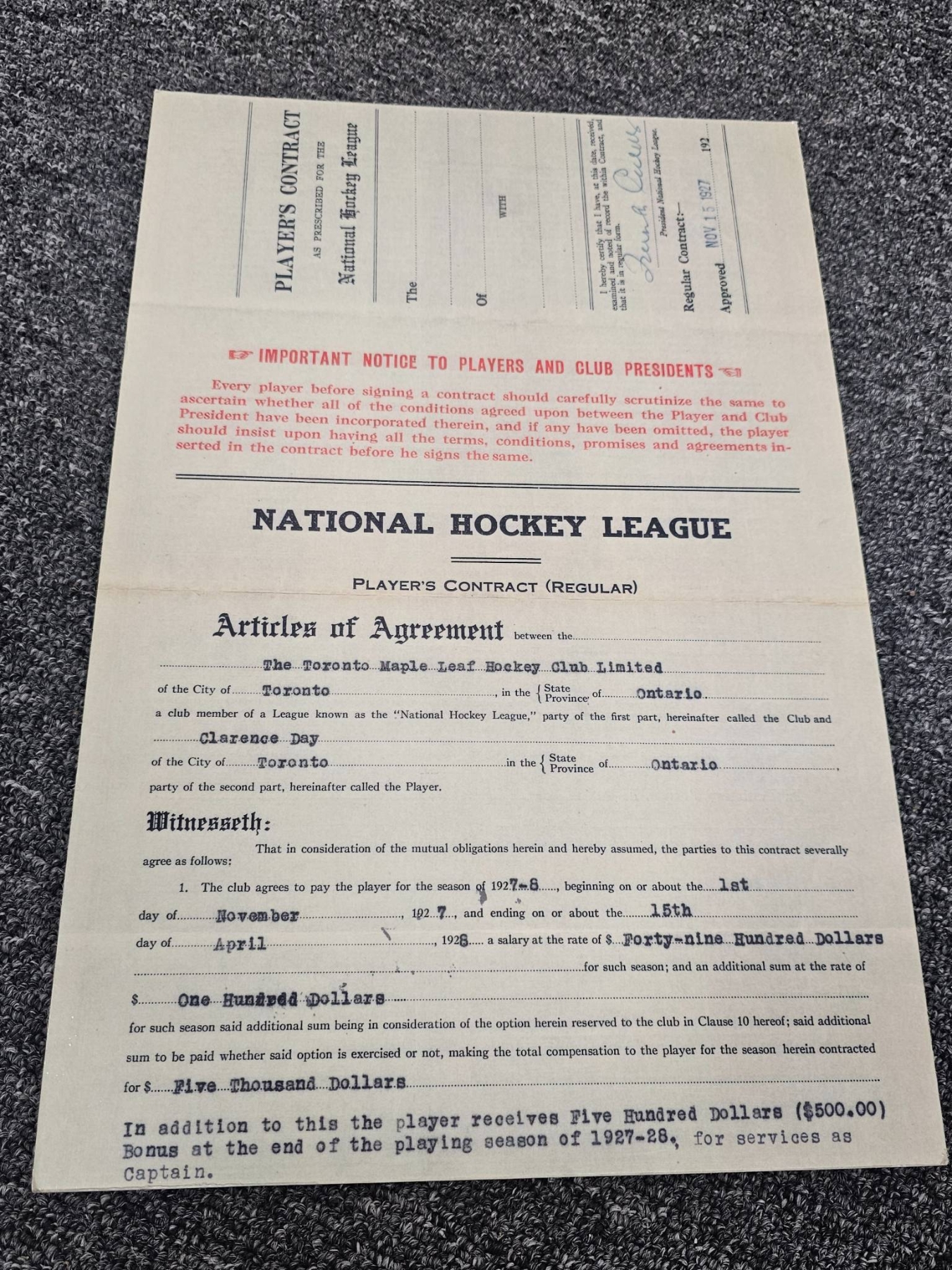 Lot 289 NHL Memorabilia Including Photos and Contracts