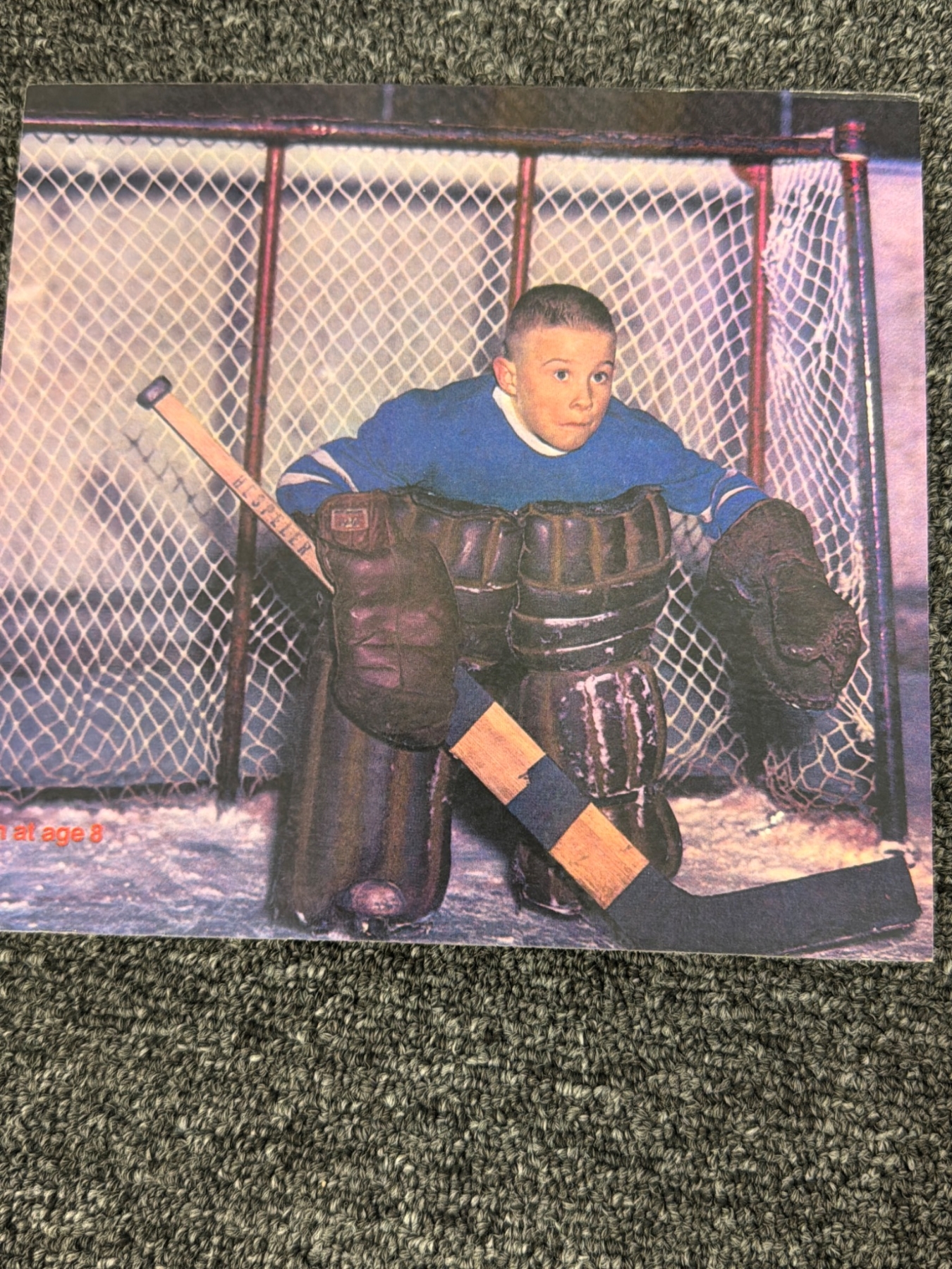 A compelling assortment celebrating Montreal Canadiens goalies. Includes framed black-and-white and color photographs of goalies in action or posed moments, showcasing legends of the game. Features a signed painting titled 'To Brian from P. James Tarrant' depicting a goalie in full Canadiens gear, alongside a charming signed photo of Ken Dryden labeled 'Age 8.' A unique collection for hockey fans and collectors alike.