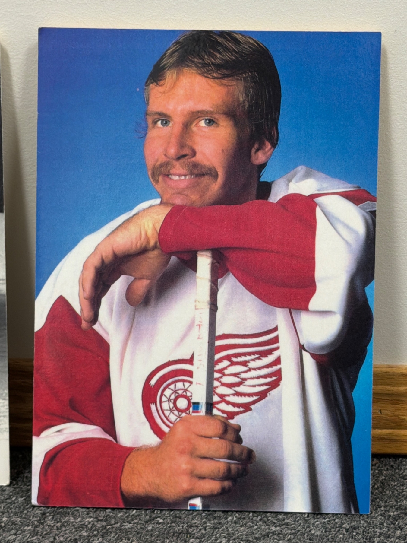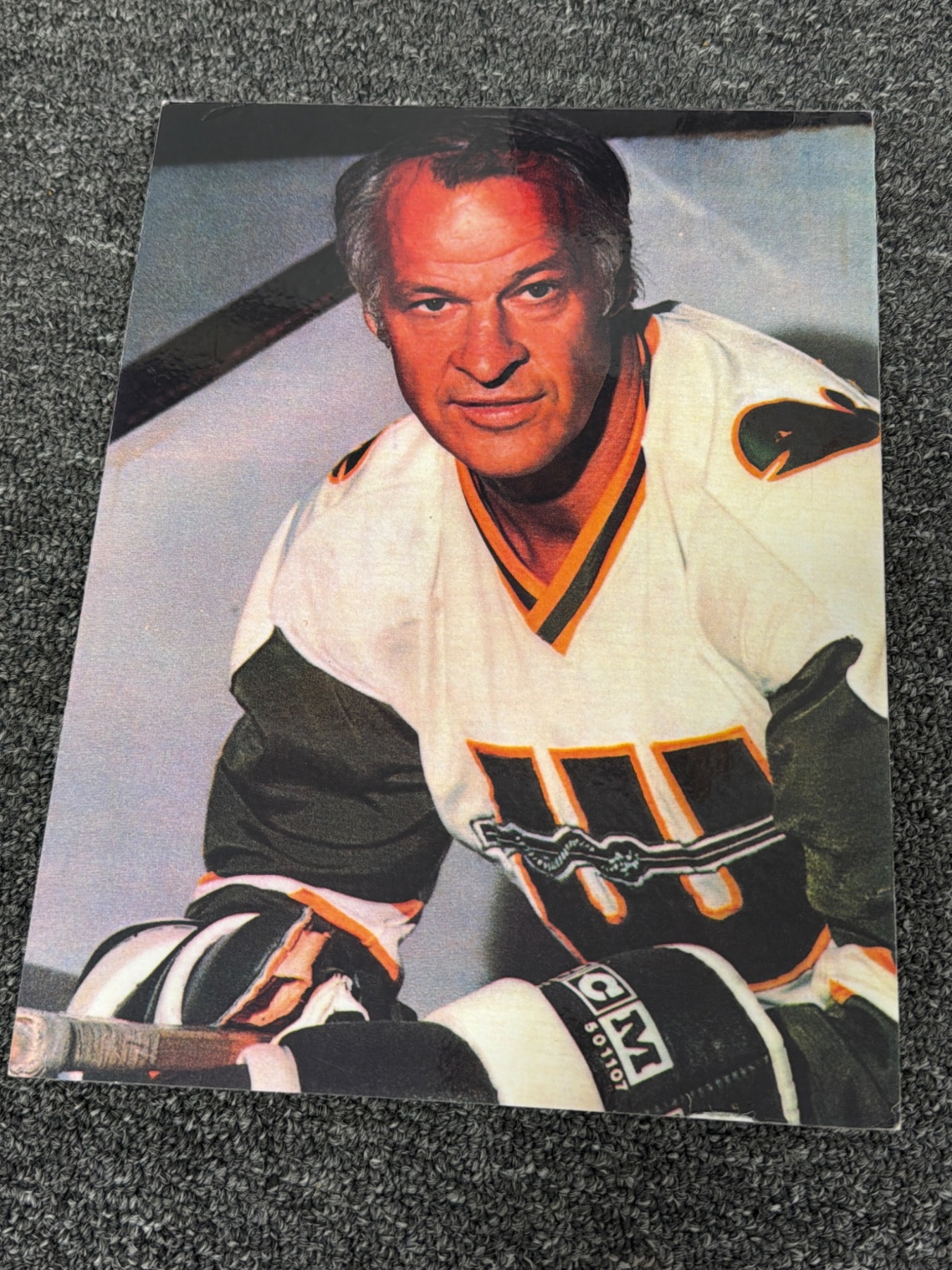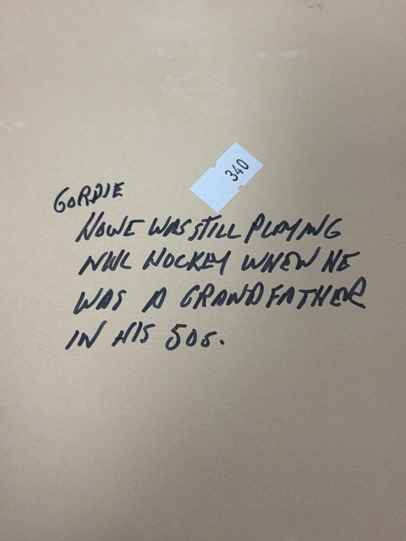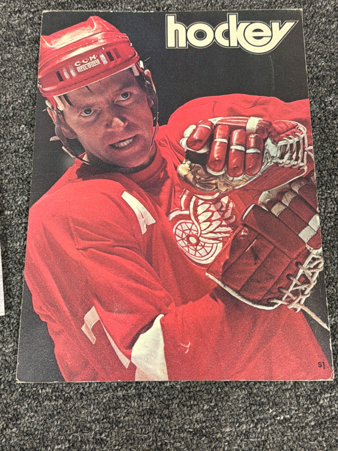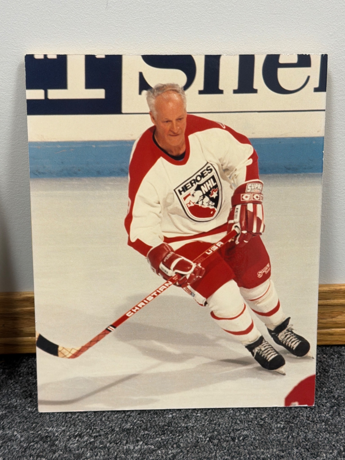 A unique collection of six hockey-related photos featuring players in action, team memorabilia, and historical details written on the back. These photographs include NHL iconography and highlight notable players, their achievements, and historical anecdotes. Perfect for hockey fans and collectors seeking nostalgic or historical sports content.