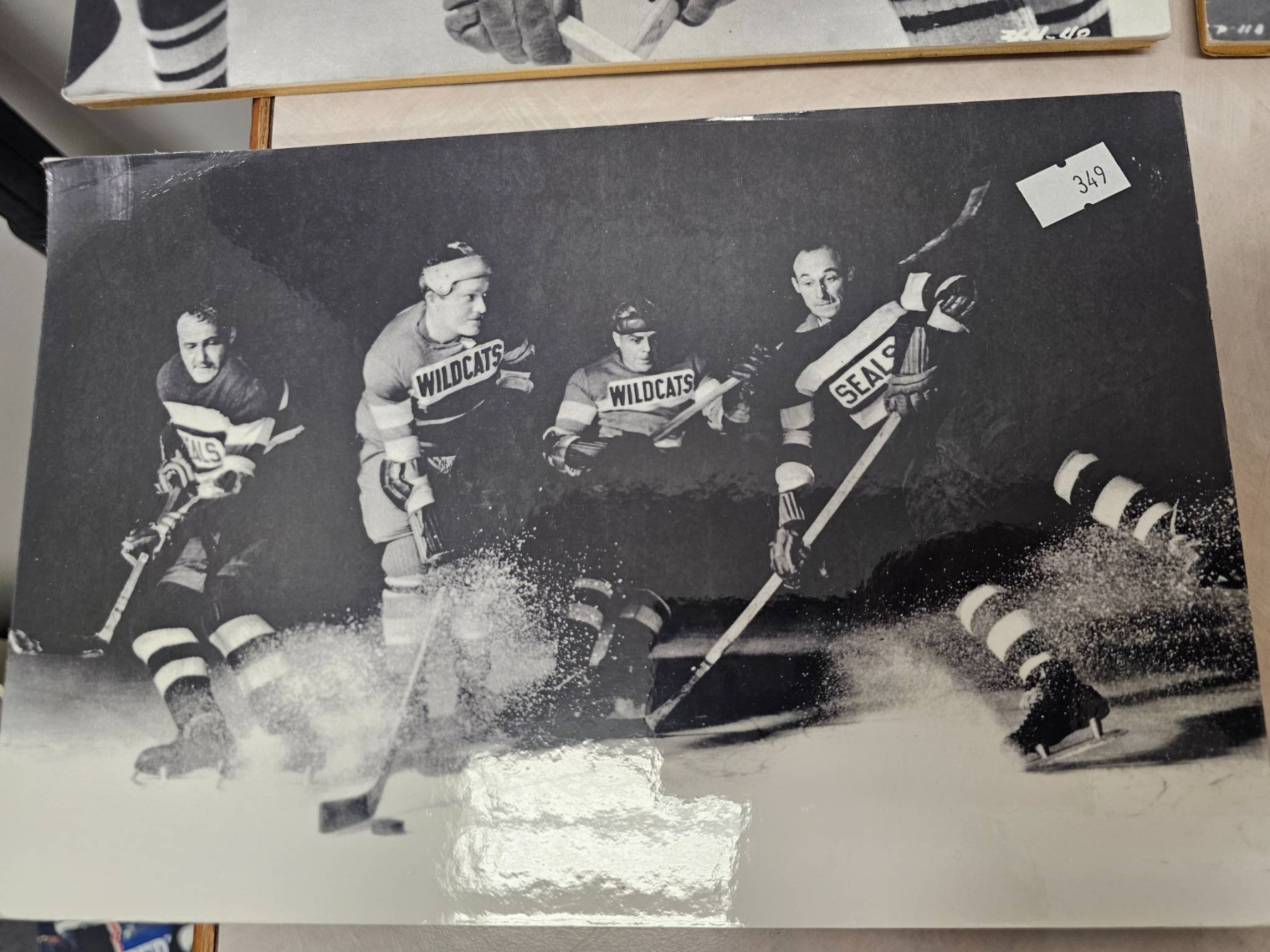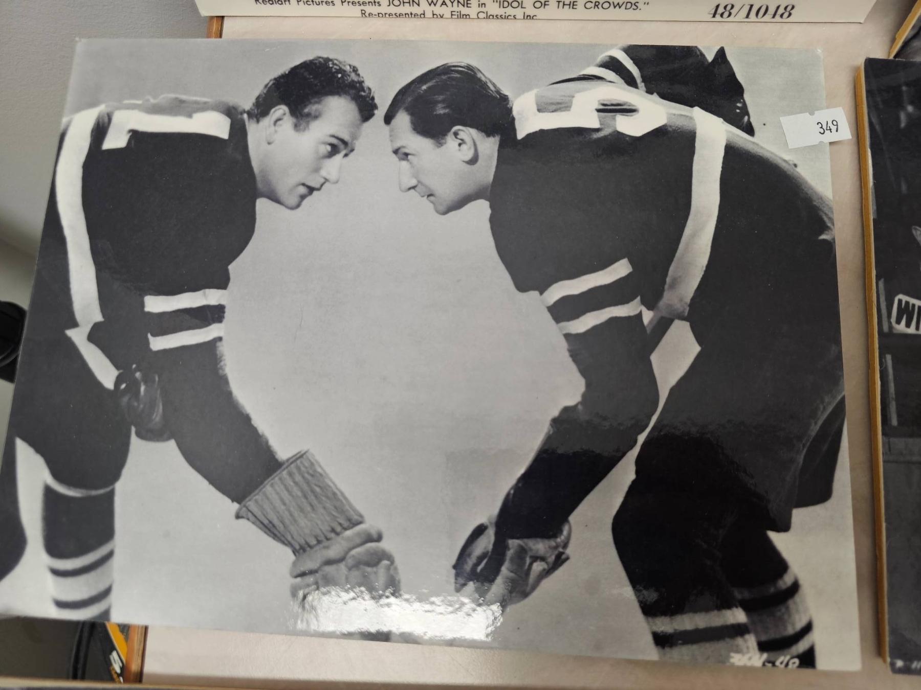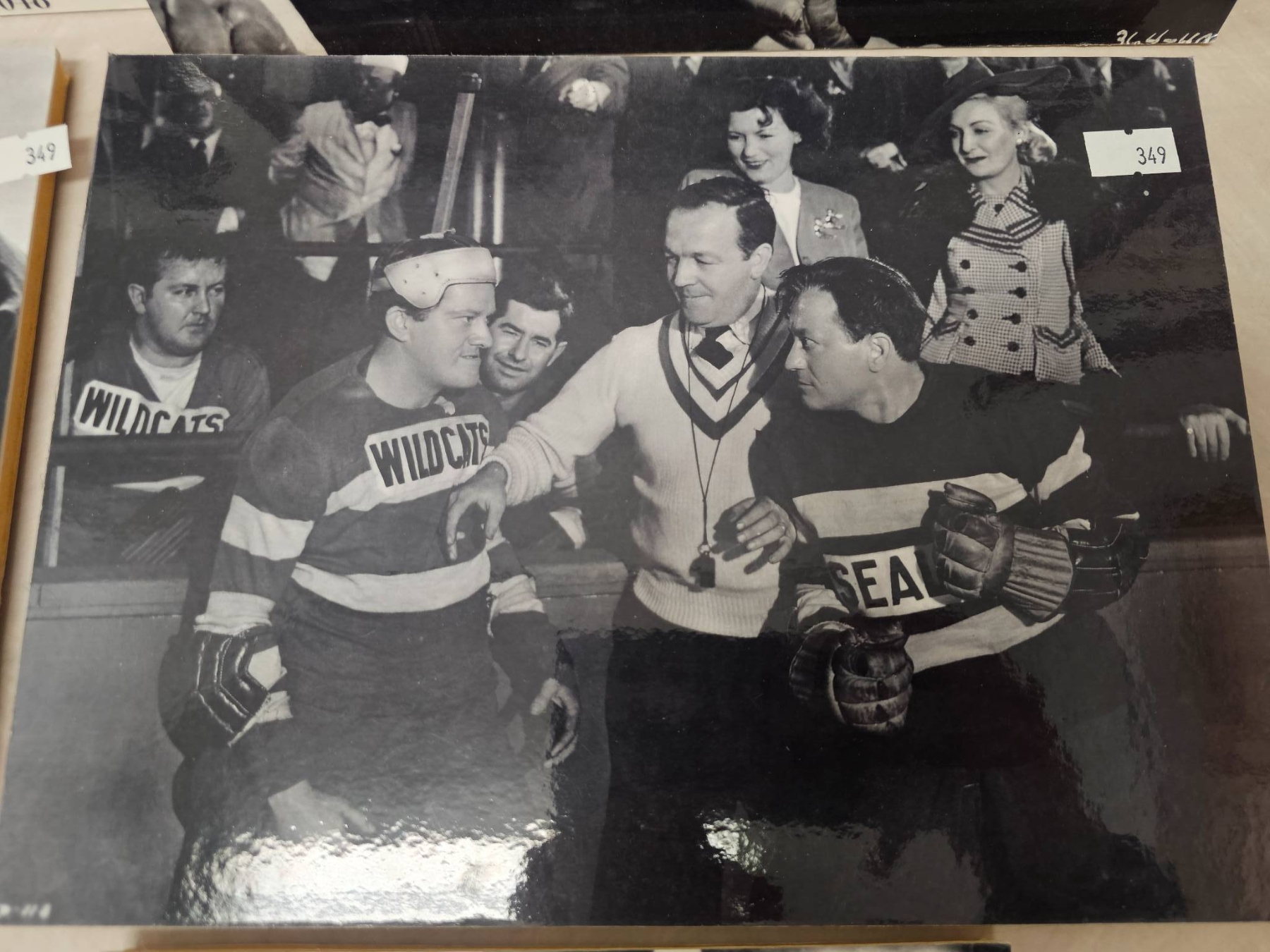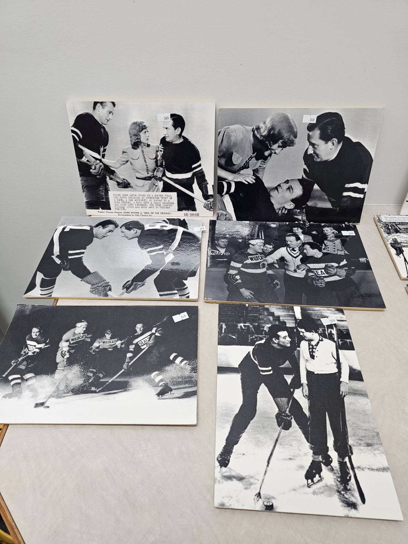 Lot 349 Black-and-White Hockey-Themed Film Stills on Display Boards