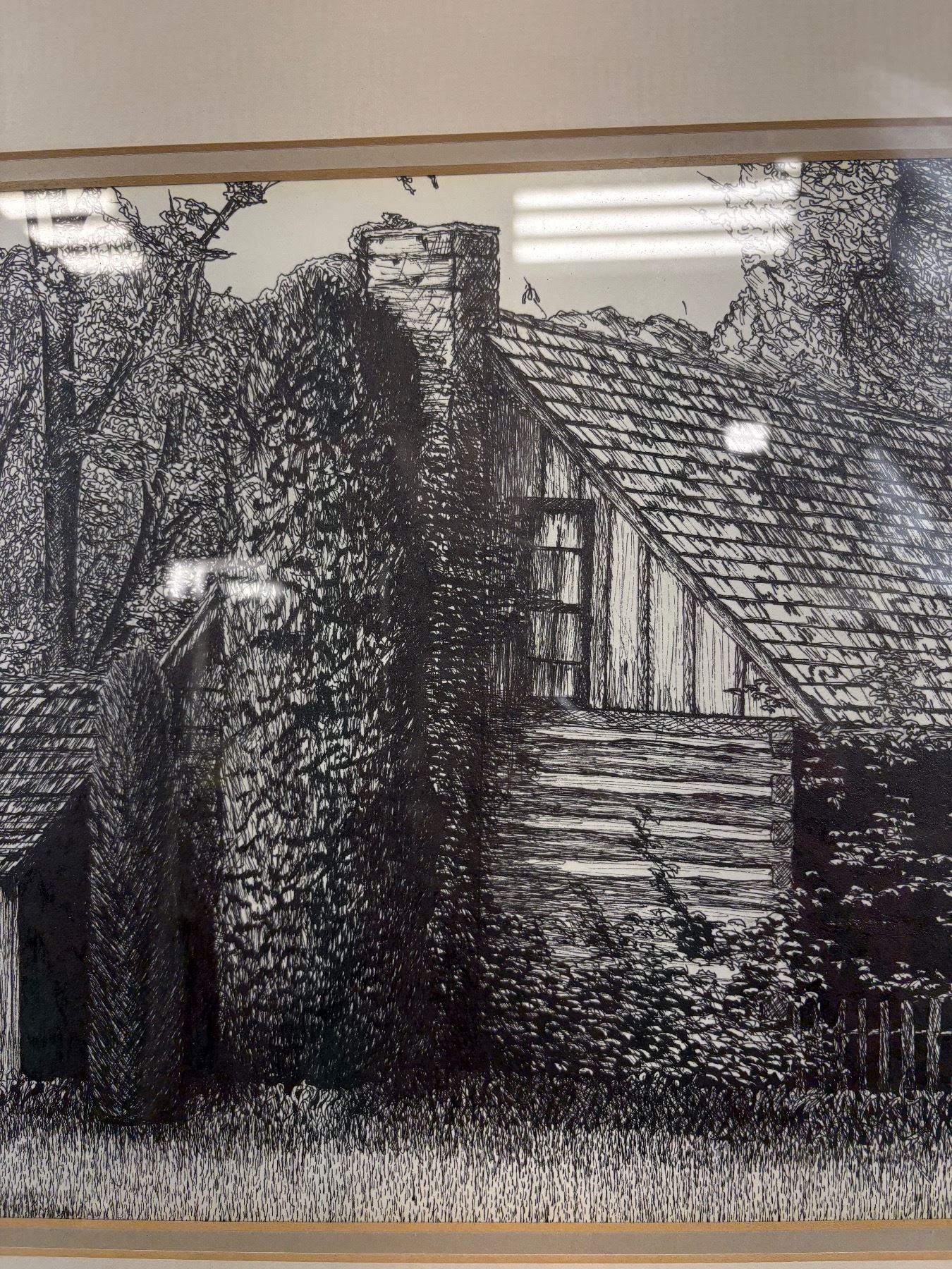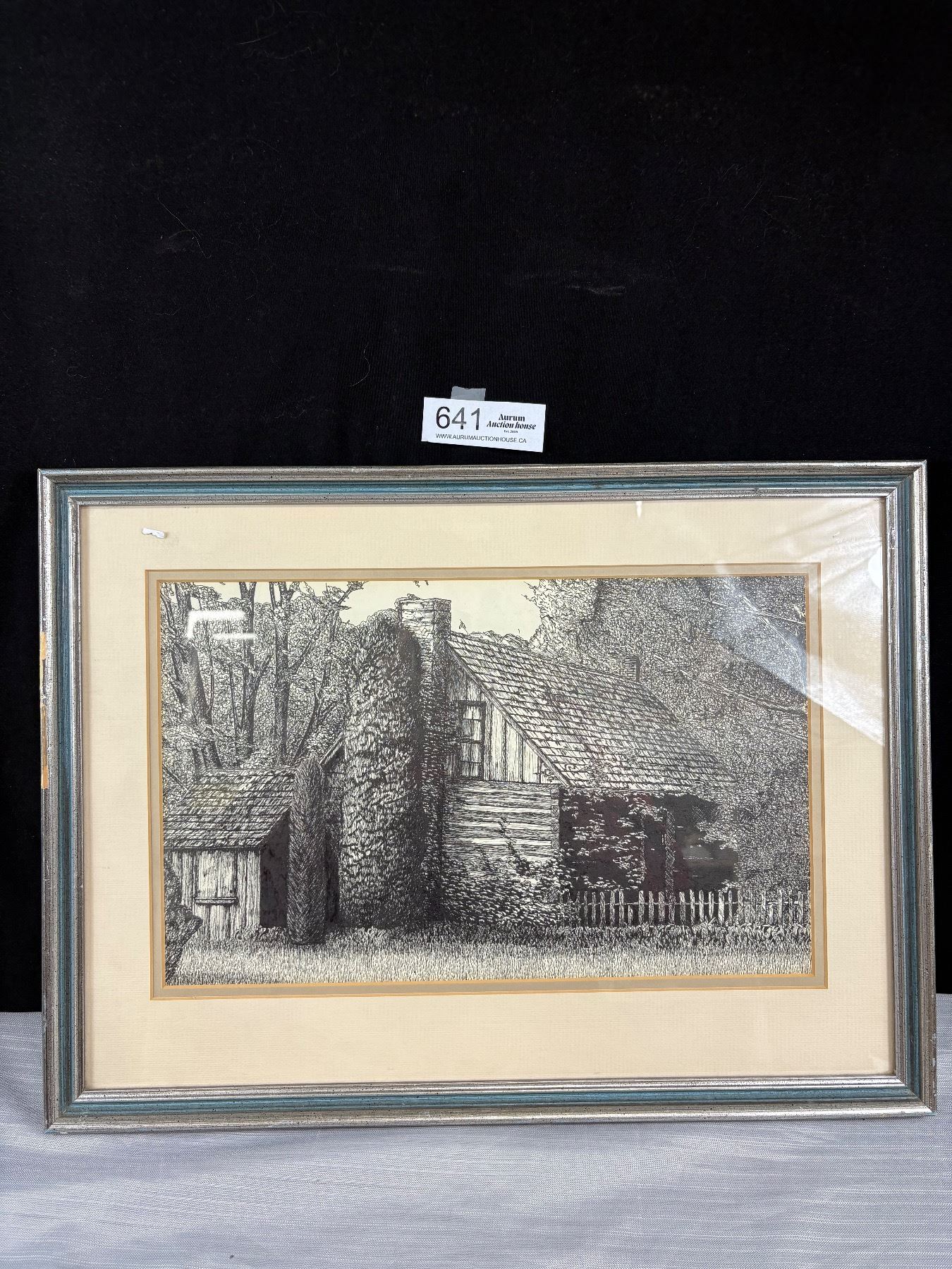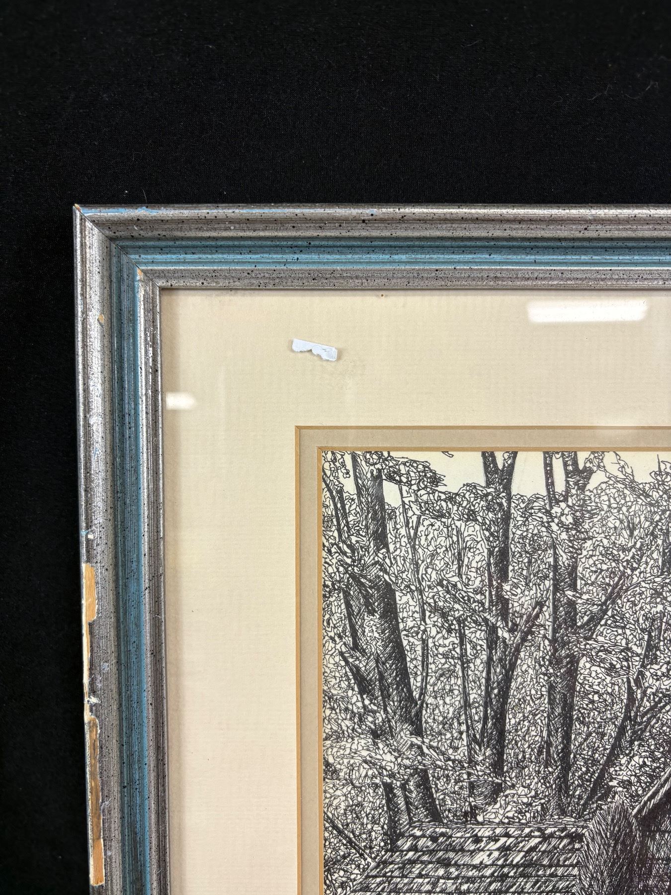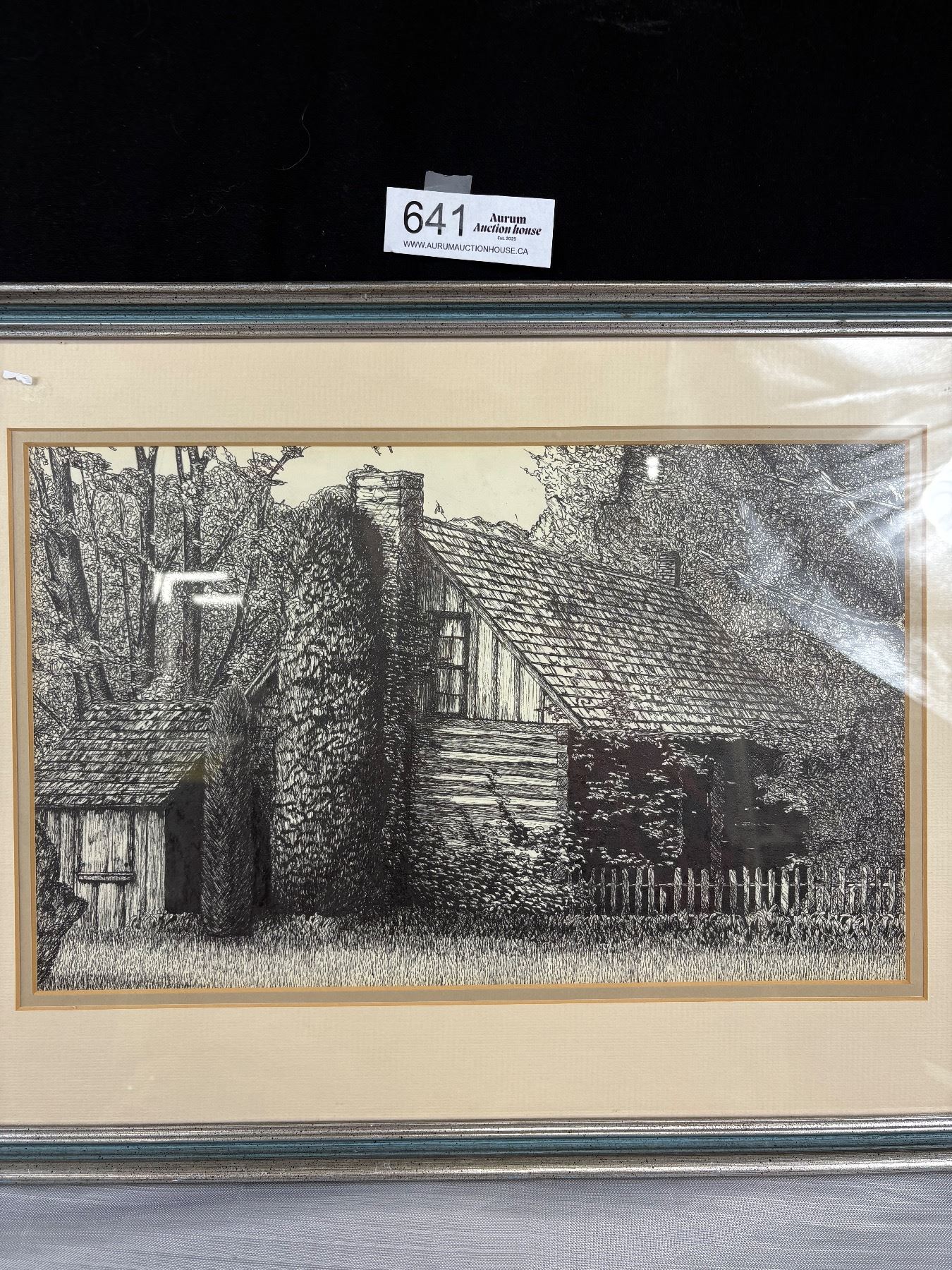 Lot 641 Very Nicely Framed Pencil Art 20" x 15" Cabin in The Woods