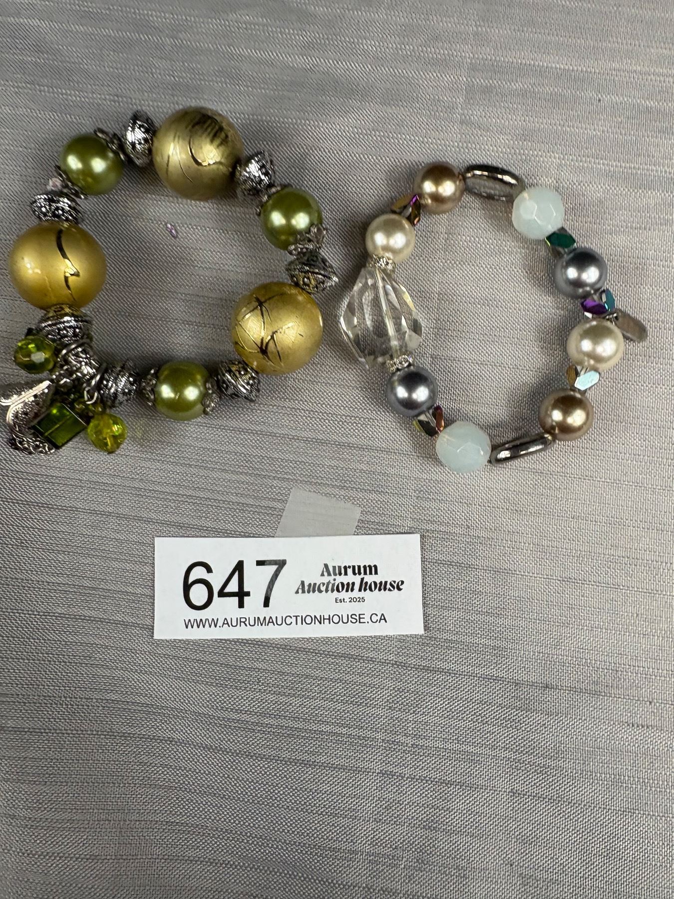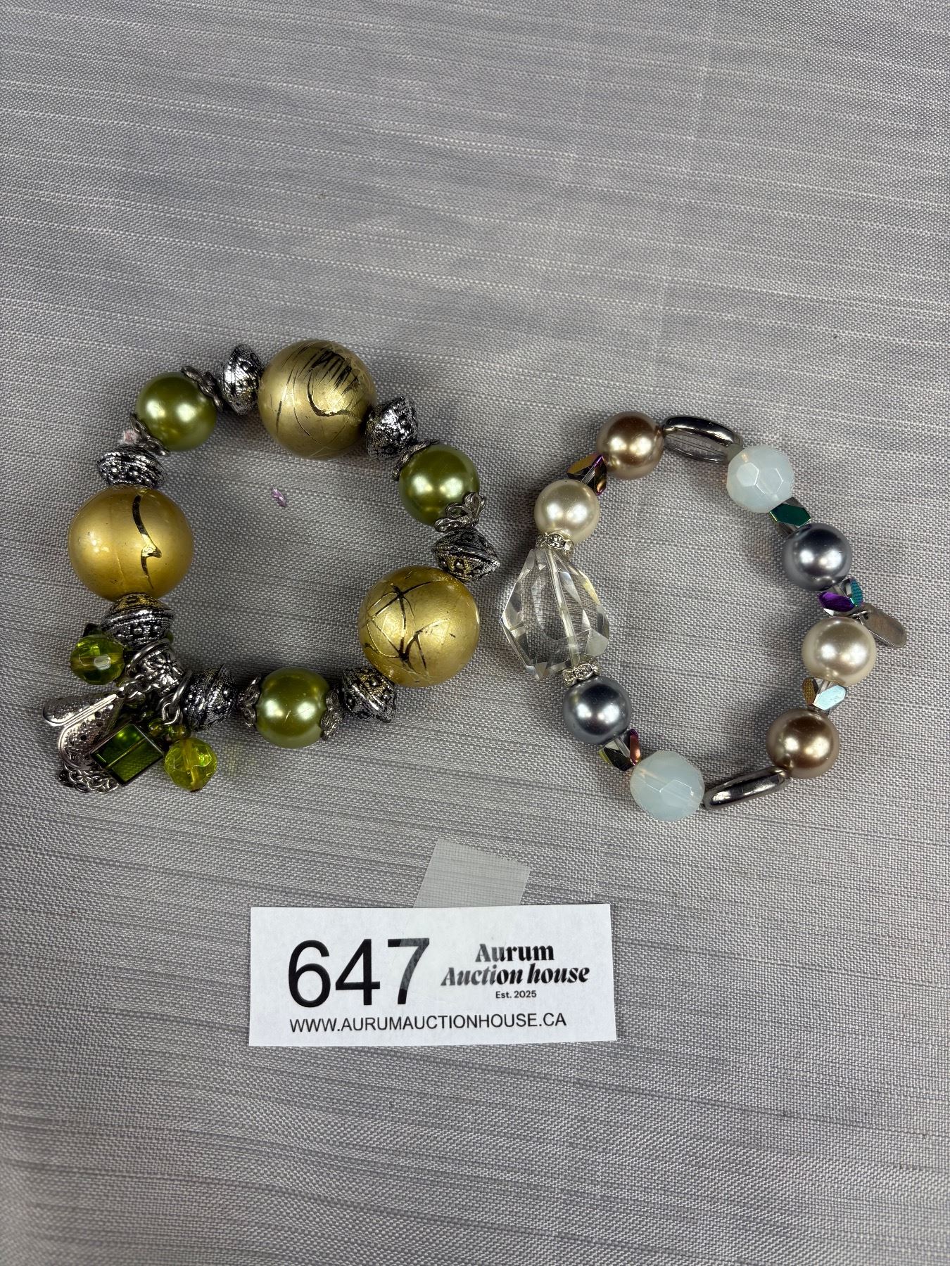 2 Large Pearls + Beads Bracelets, One Marked Missaka