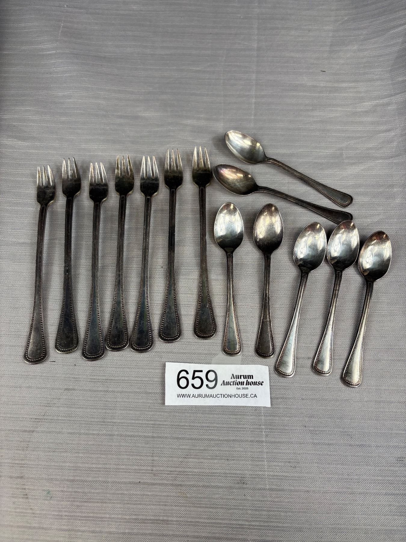 Lot 659 Vintage Each 7 Matching Silver Spoons and Forks Unmarked
