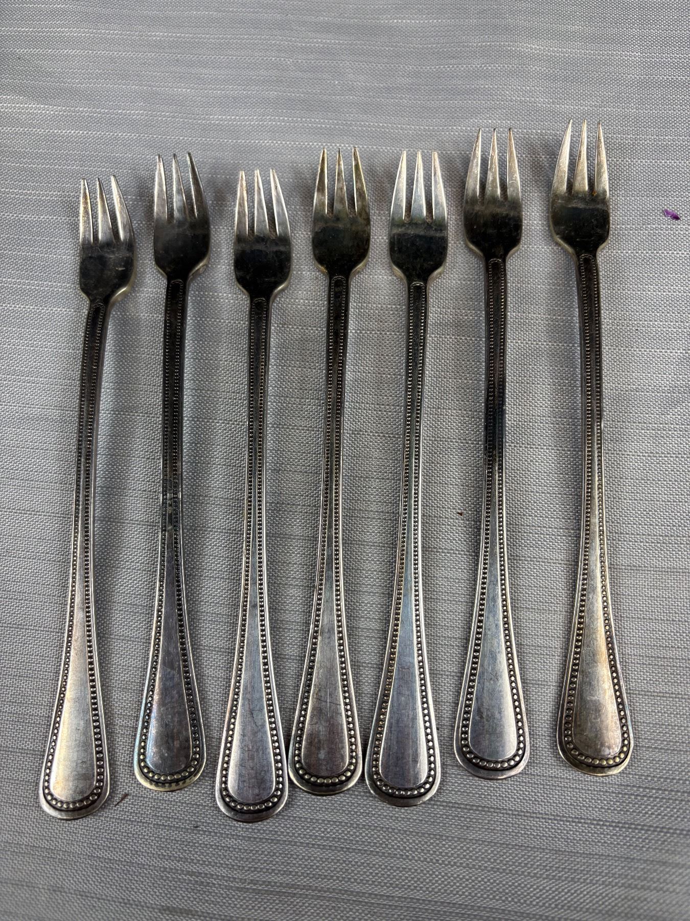 Vintage Each 7 Matching Silver Spoons and Forks Unmarked