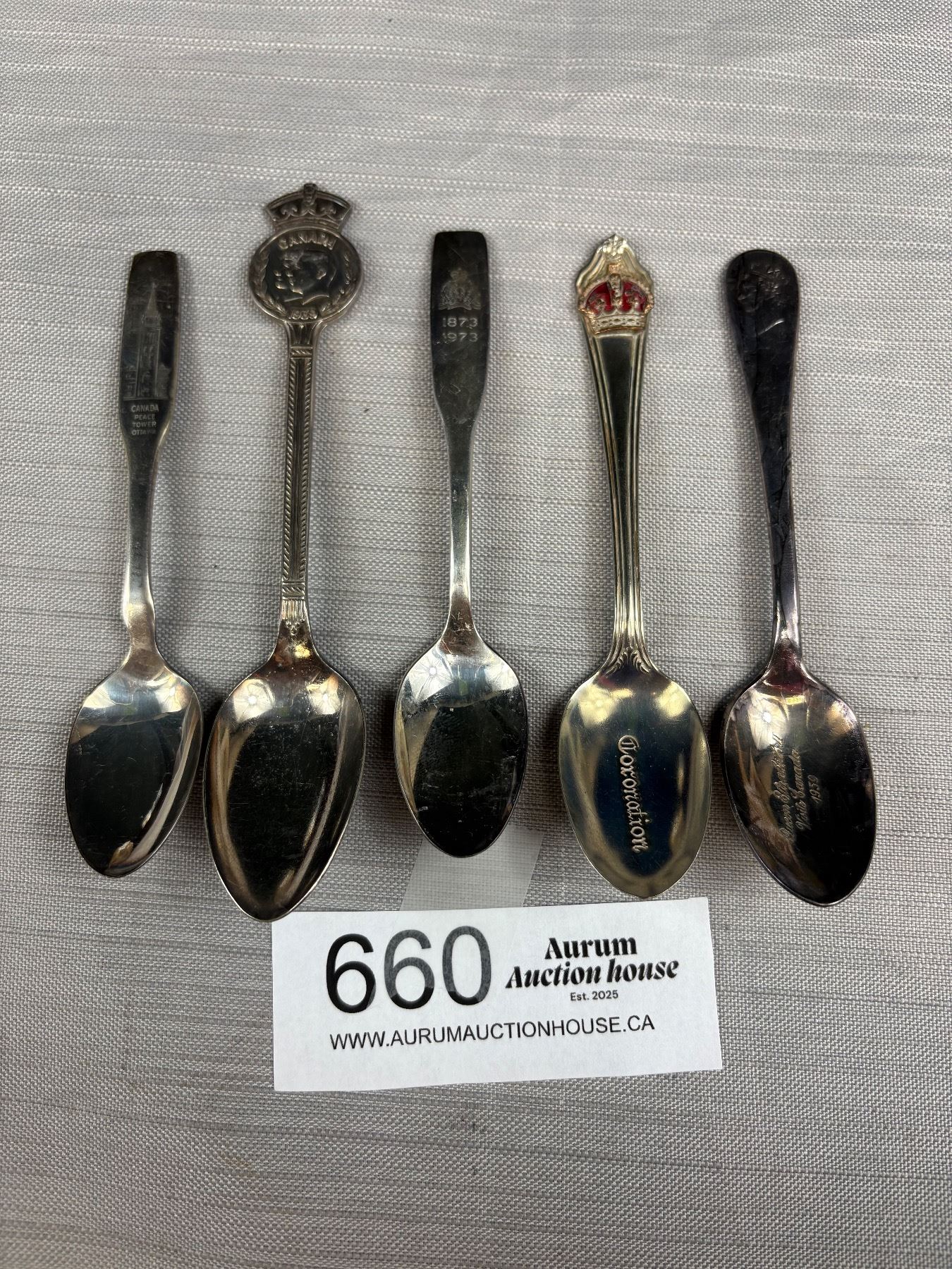 Lot 660 5 Vintage Silver Souvenier Spoons