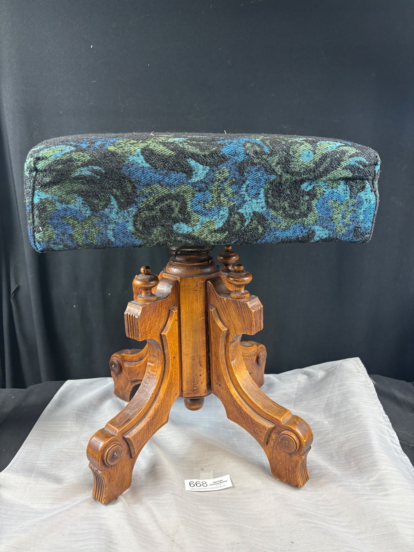 Lot 668 Very Nice Mid Century Cushioned Swivel Organ Stool, 20" Tall