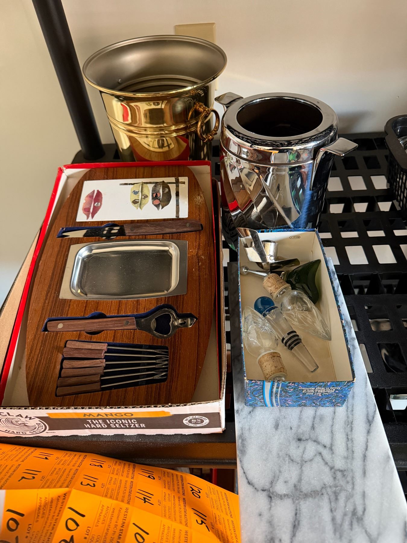 Vintage serving tray and ice buckets