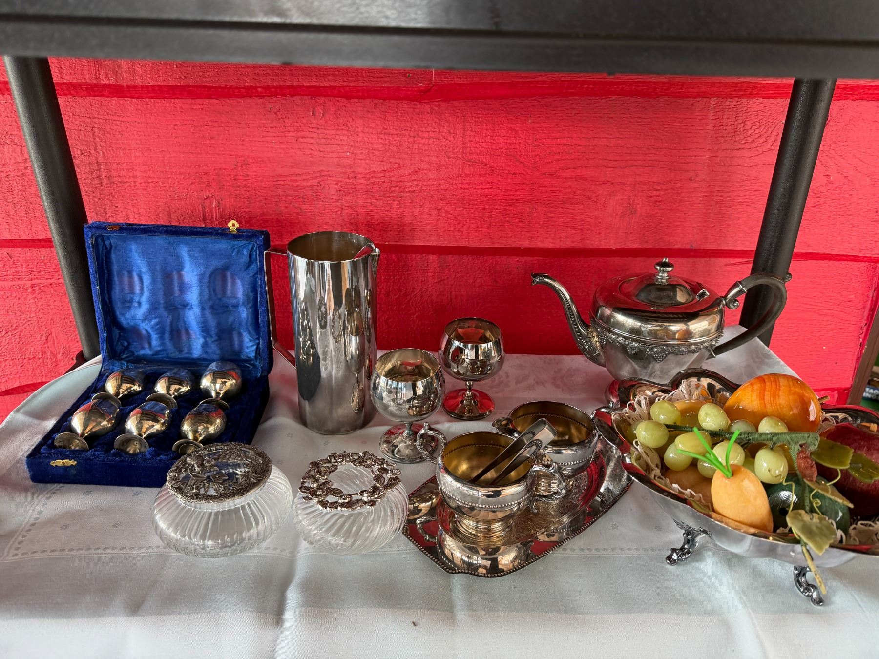 Lot 230 Silver plate, goblets, artificial fruit and vegetables