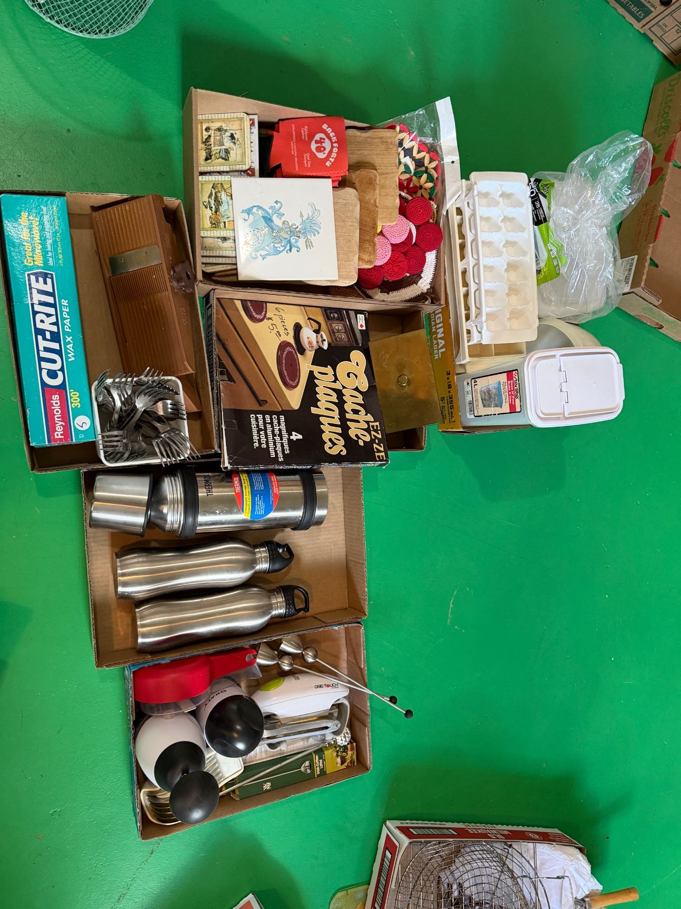 Water bottles, thermoses, choppers, and other kitchen items