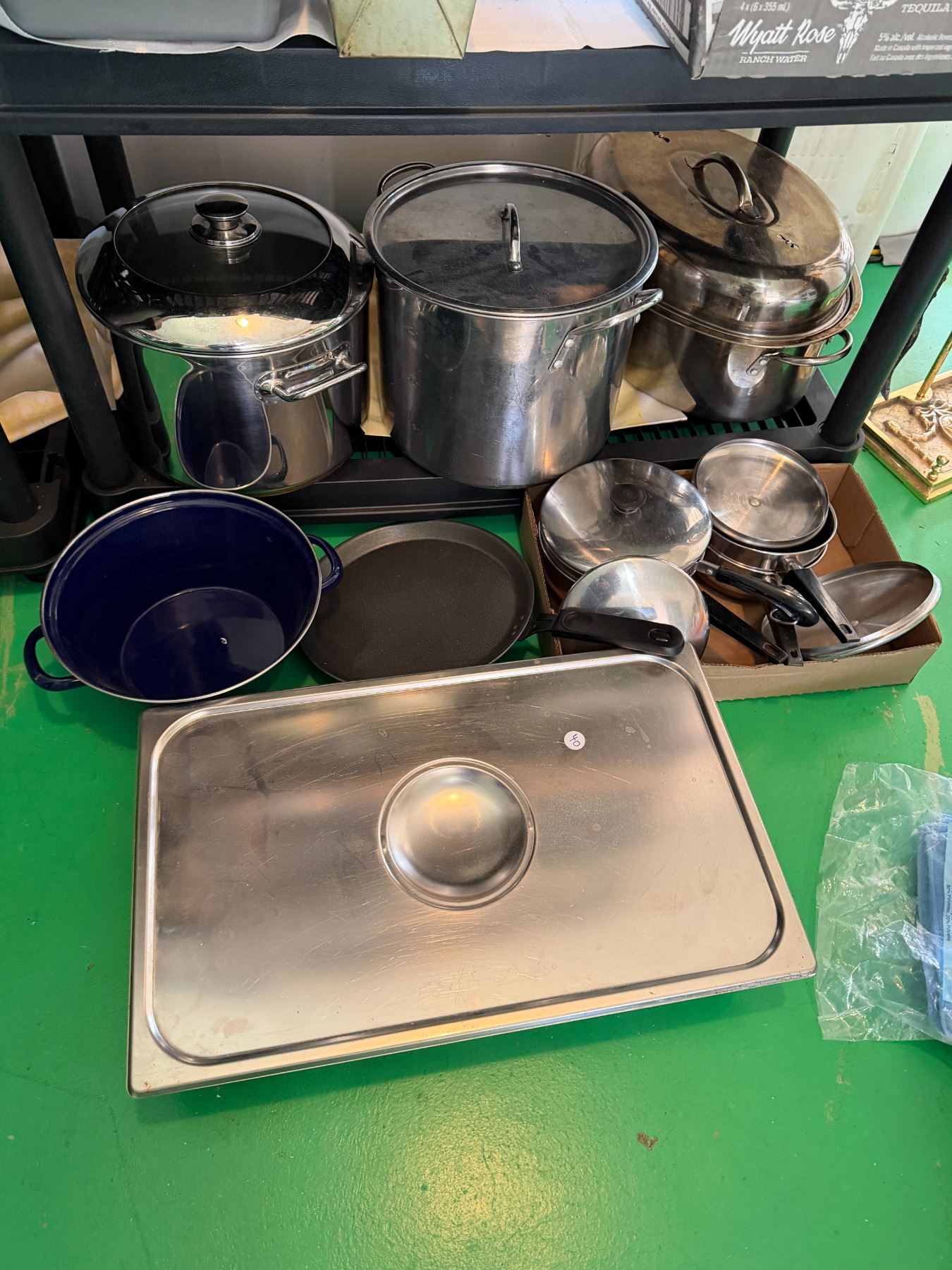 Stock pots, roasting pans, pots, and pans, shaffing dish