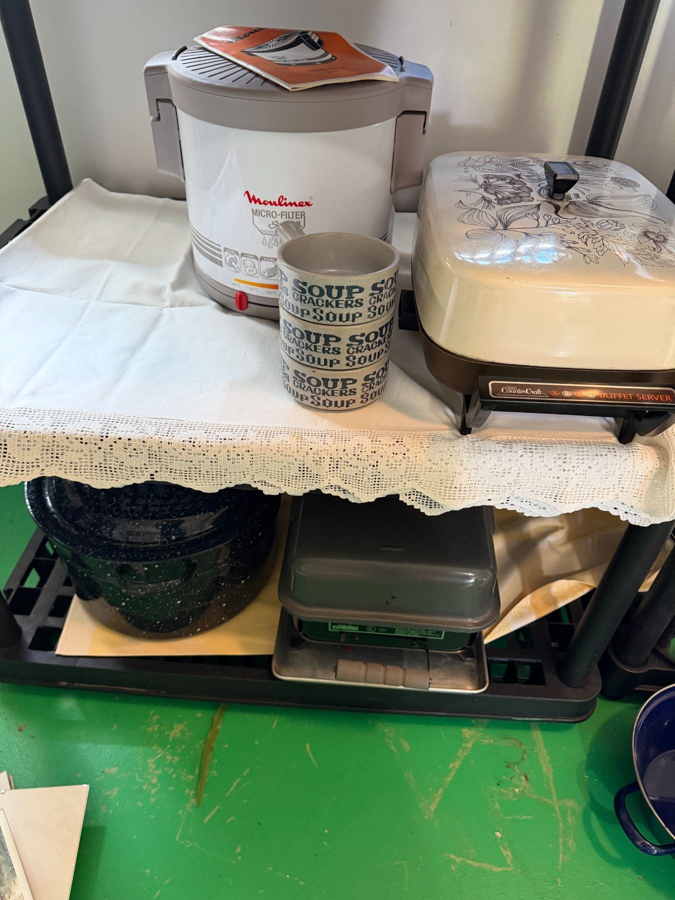 Lot 292 Canning pot, barbecue buffet server, crockpot, and soup pot