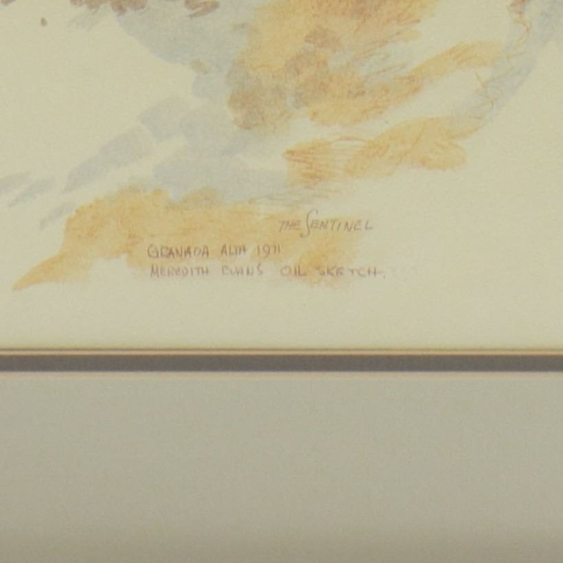 Lot 12 Meredith Evans (1919–1996), The Sentinel, Granada Alta, 1971, Original Oil Sketch