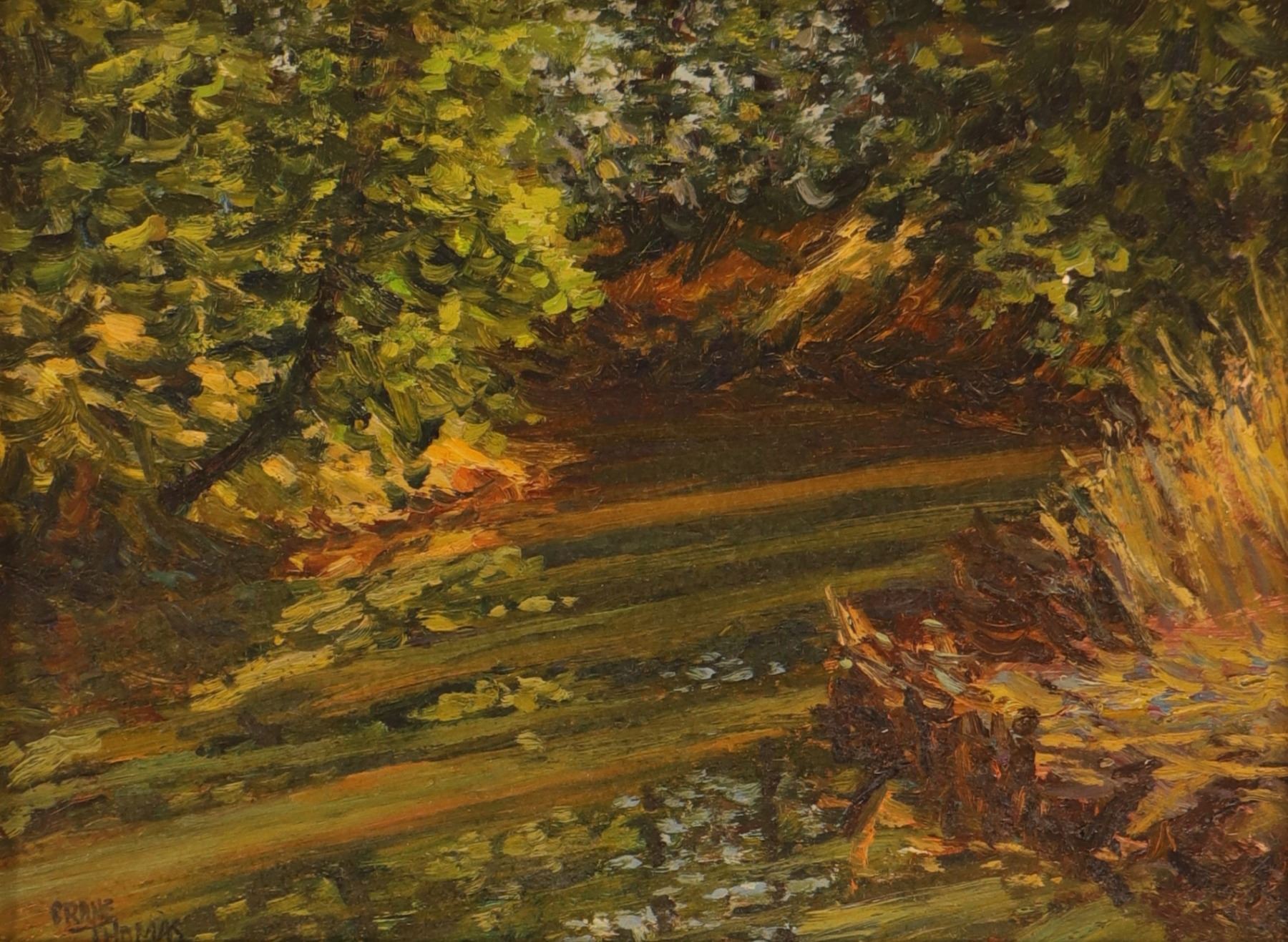 Lot 20 Crane Thomas, Untitled (Woodland Stream), Paint on Board