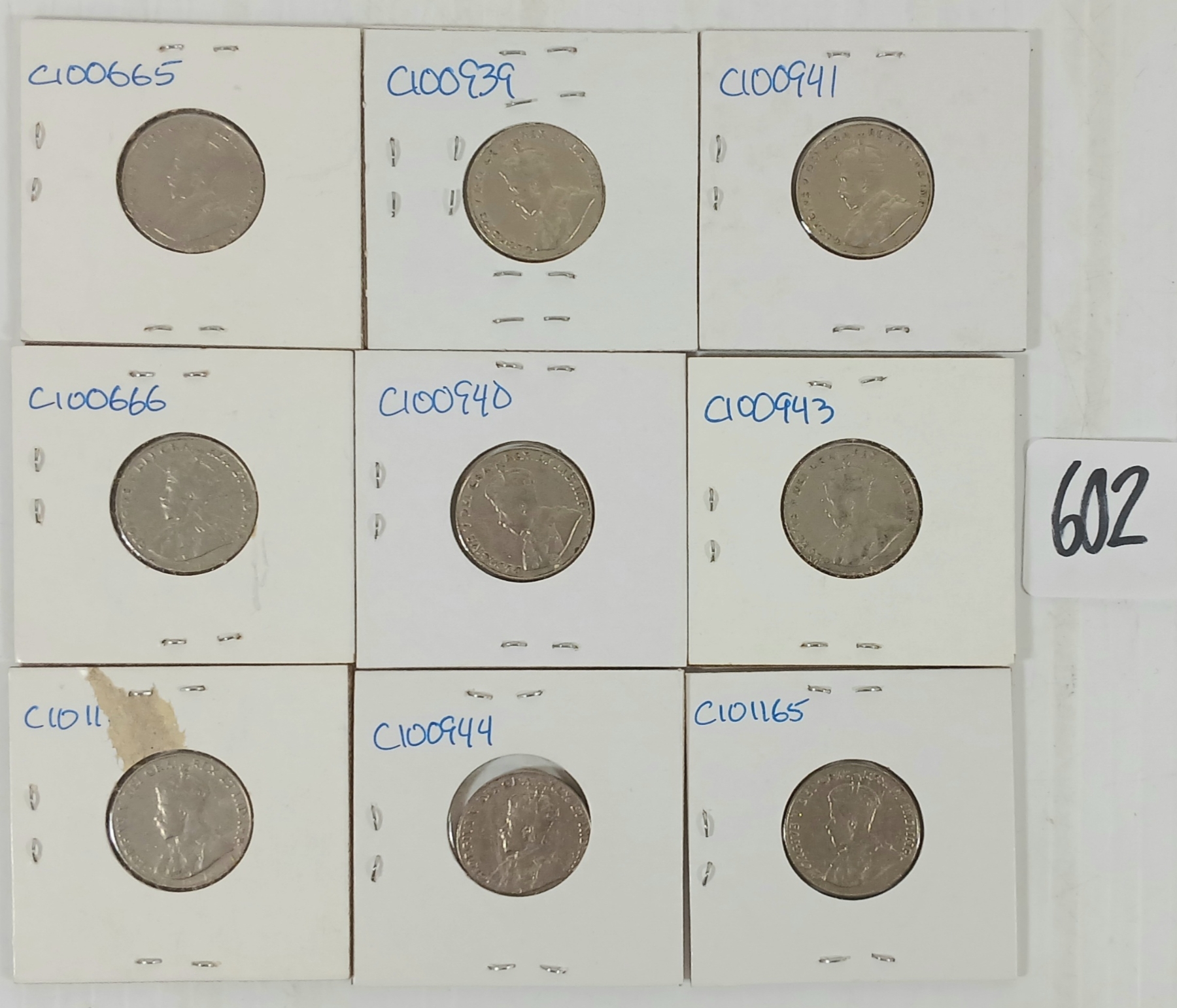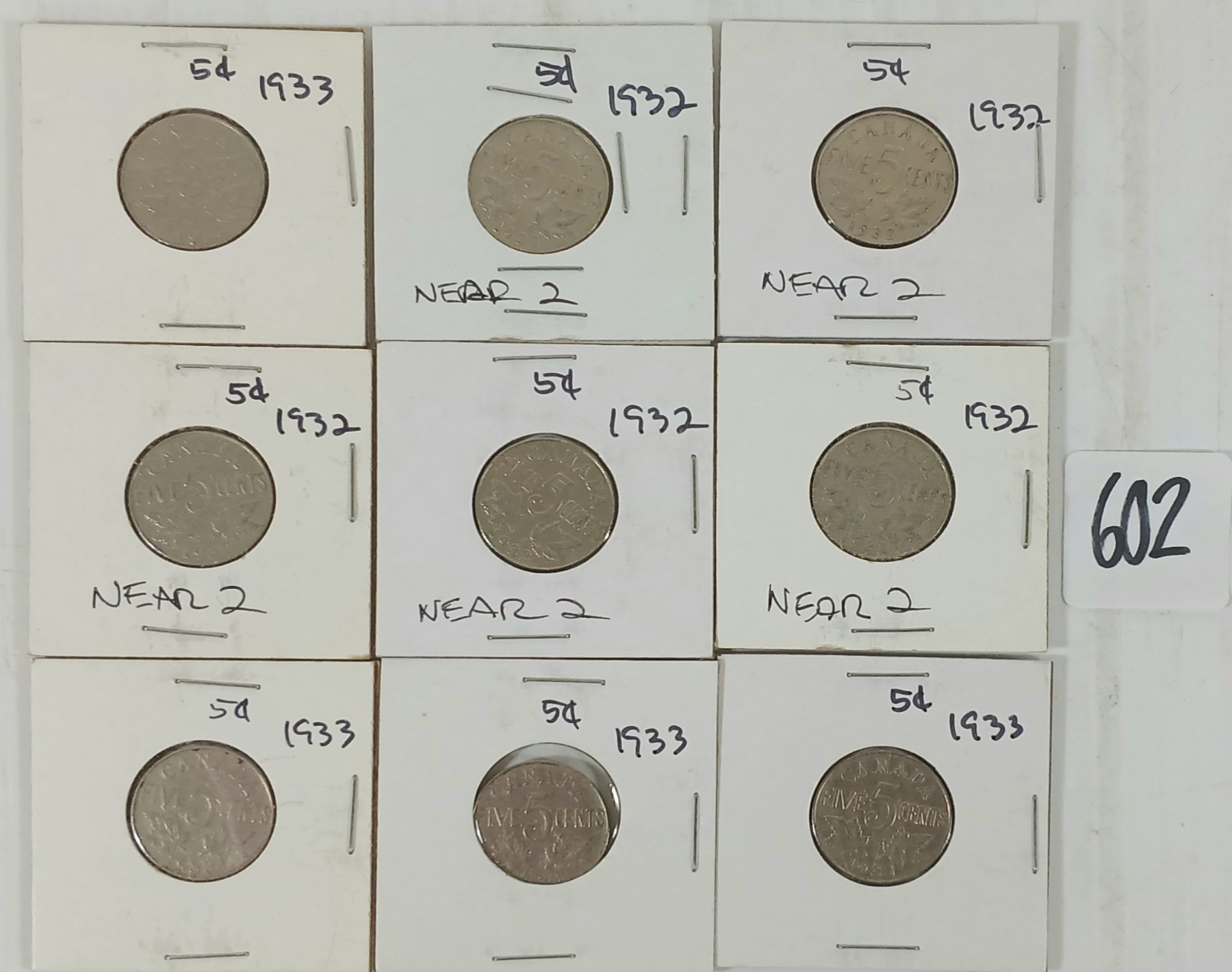 Lot 602 LOT OF 9 - 1932 & 1933 CDN 5 CENT COINS