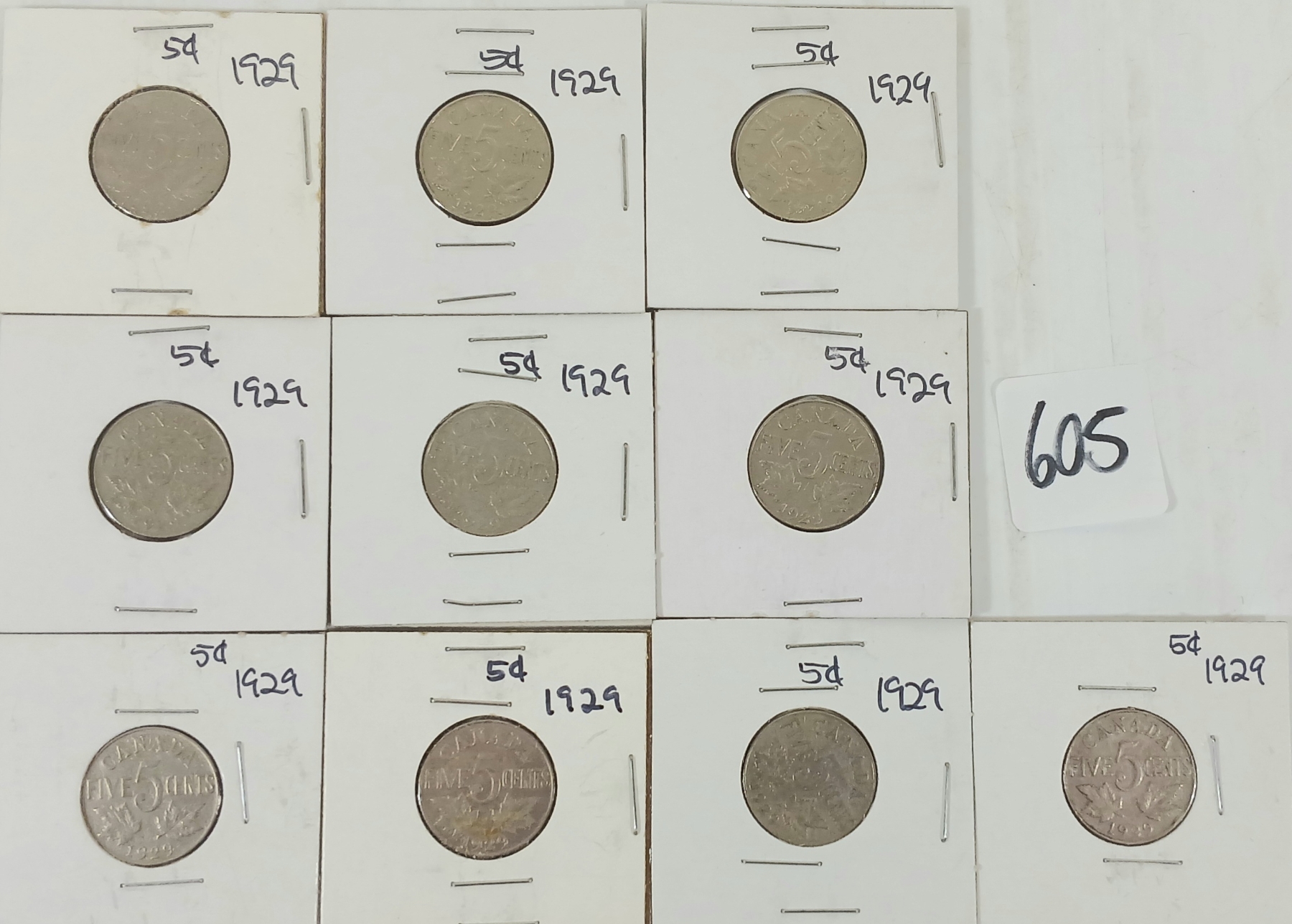 Lot 605 LOT OF 10 - 1929 CDN 5 CENT COINS