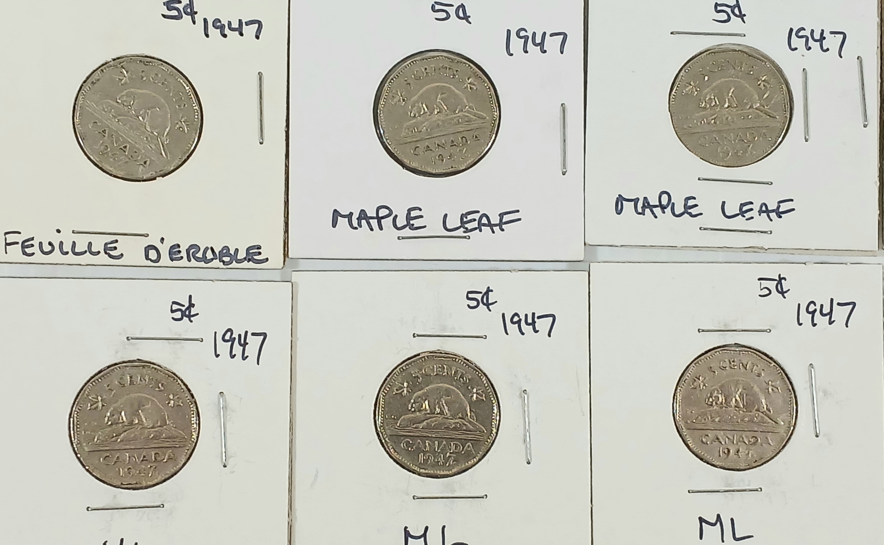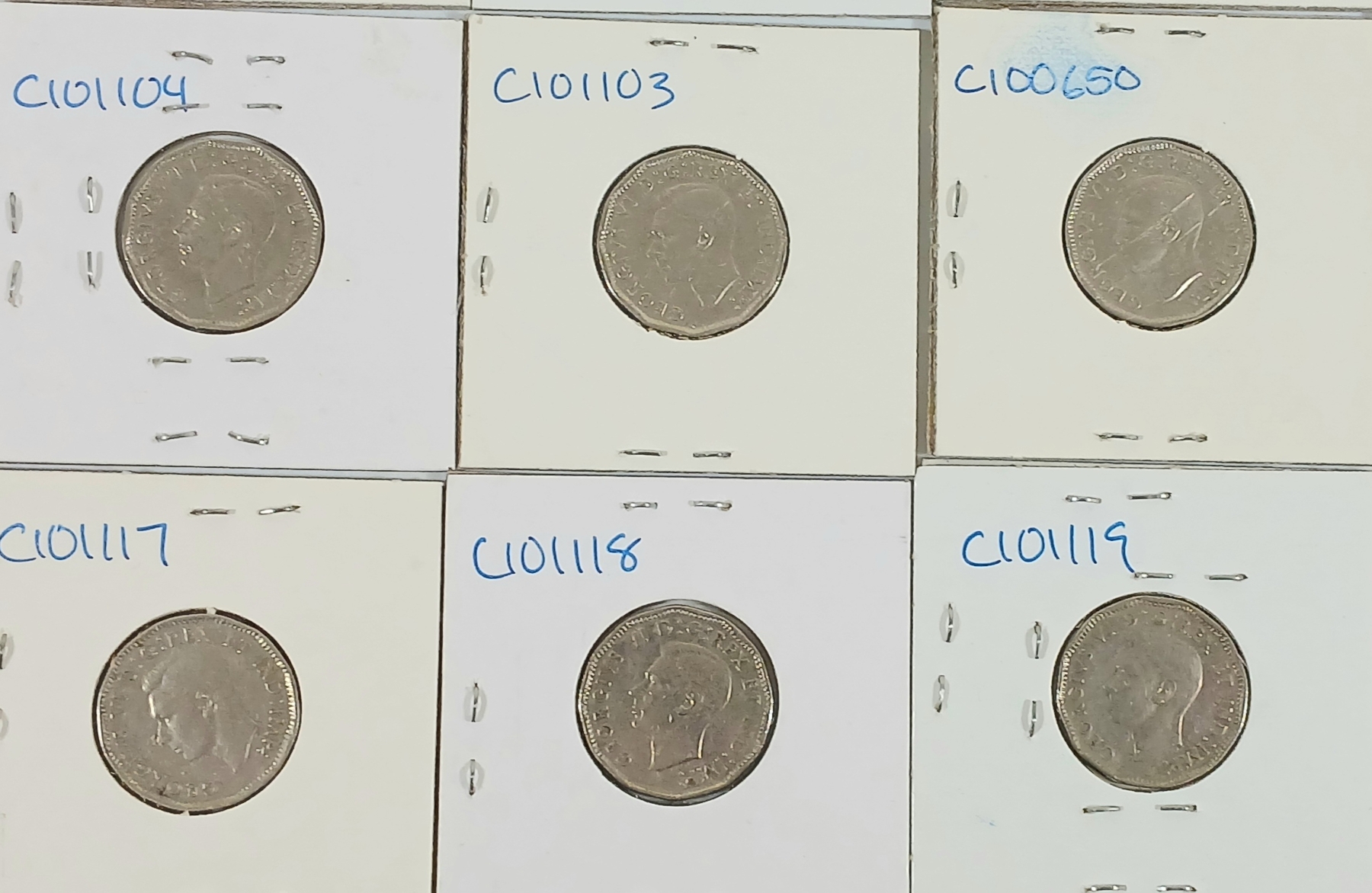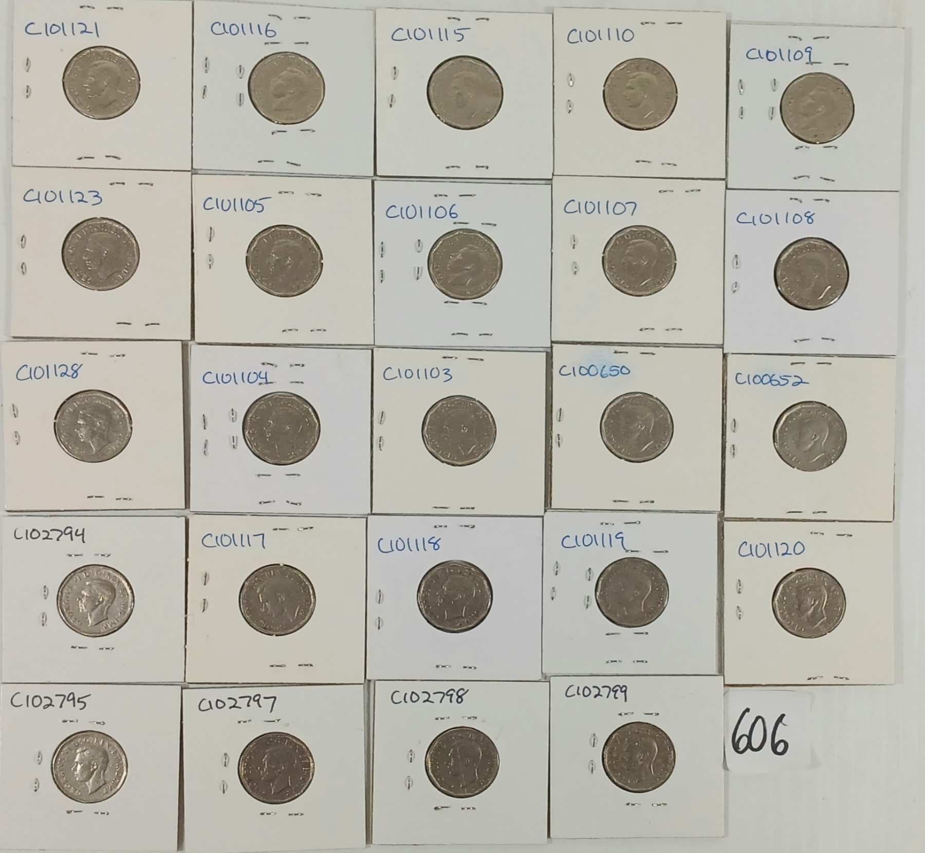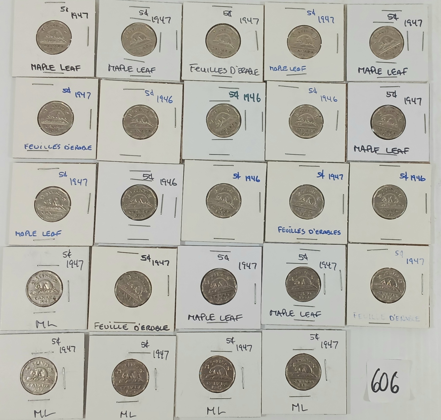 Lot 606 LOT OF 24 - 1946 & 1947 CDN 5 CENT COINS