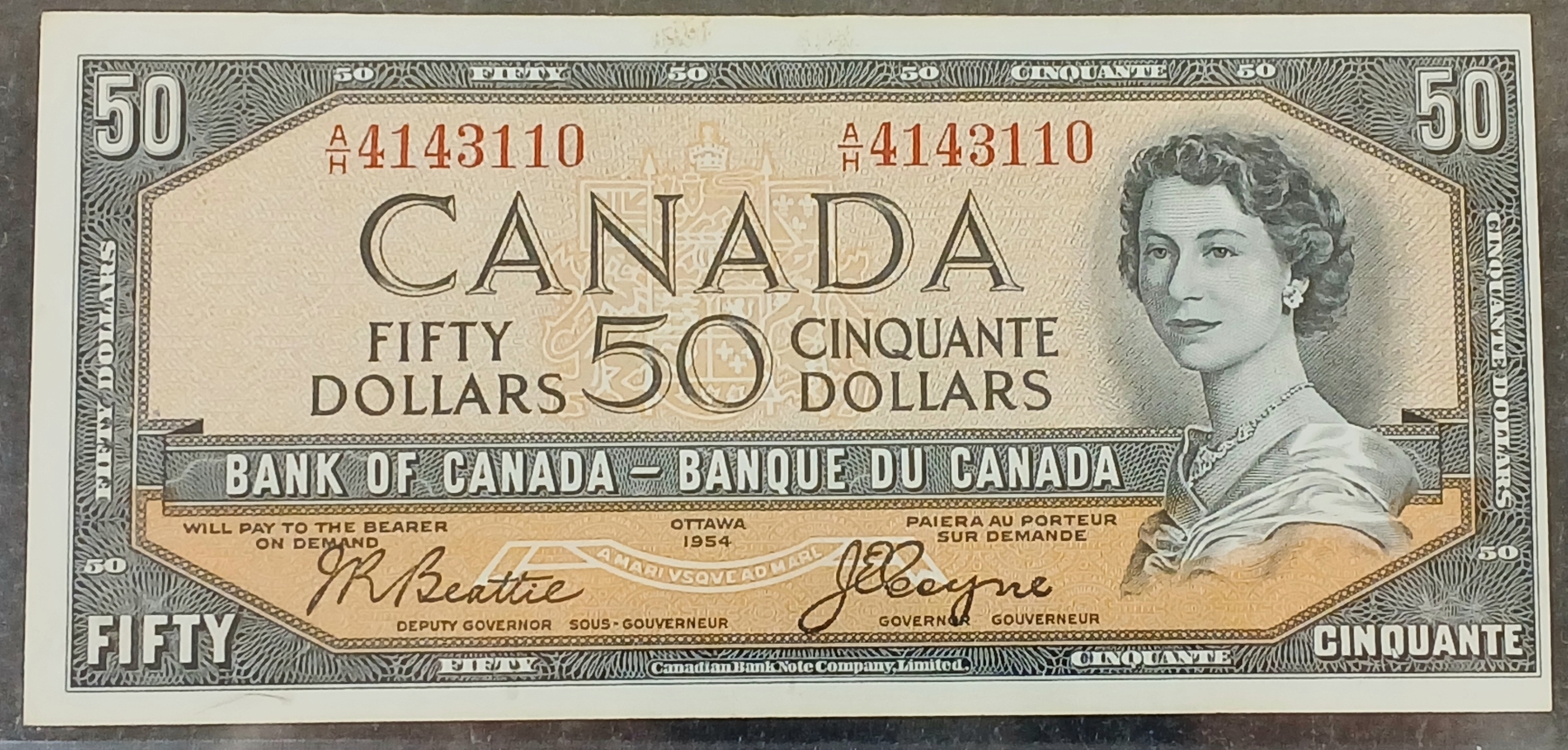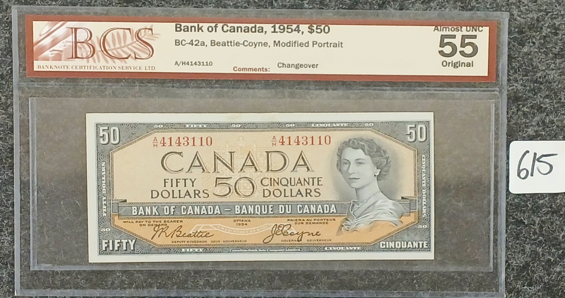 Lot 615 1954 CDN $50 BANKNOTE - BCS GRADED