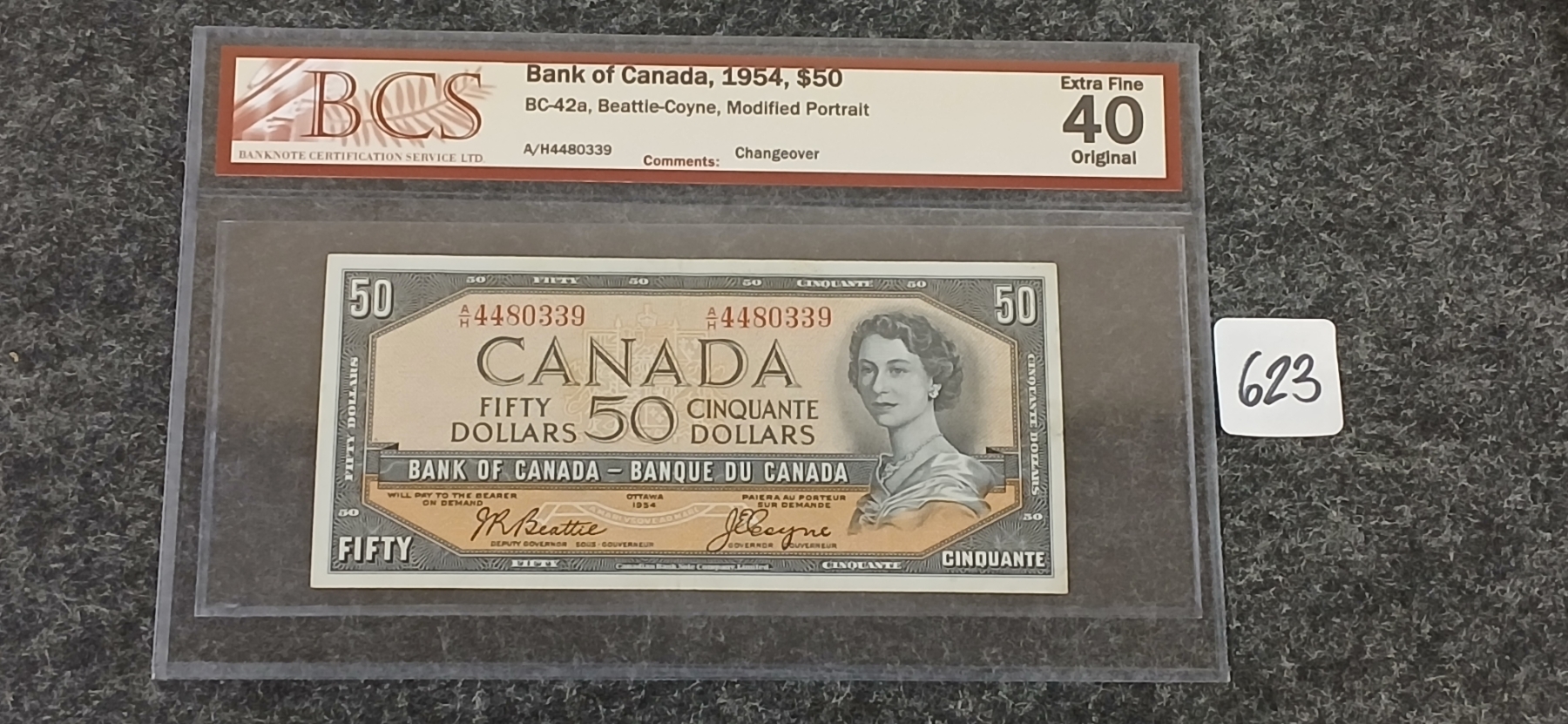 Lot 623 1954 CDN $50 BANKNOTE - BCS GRADED