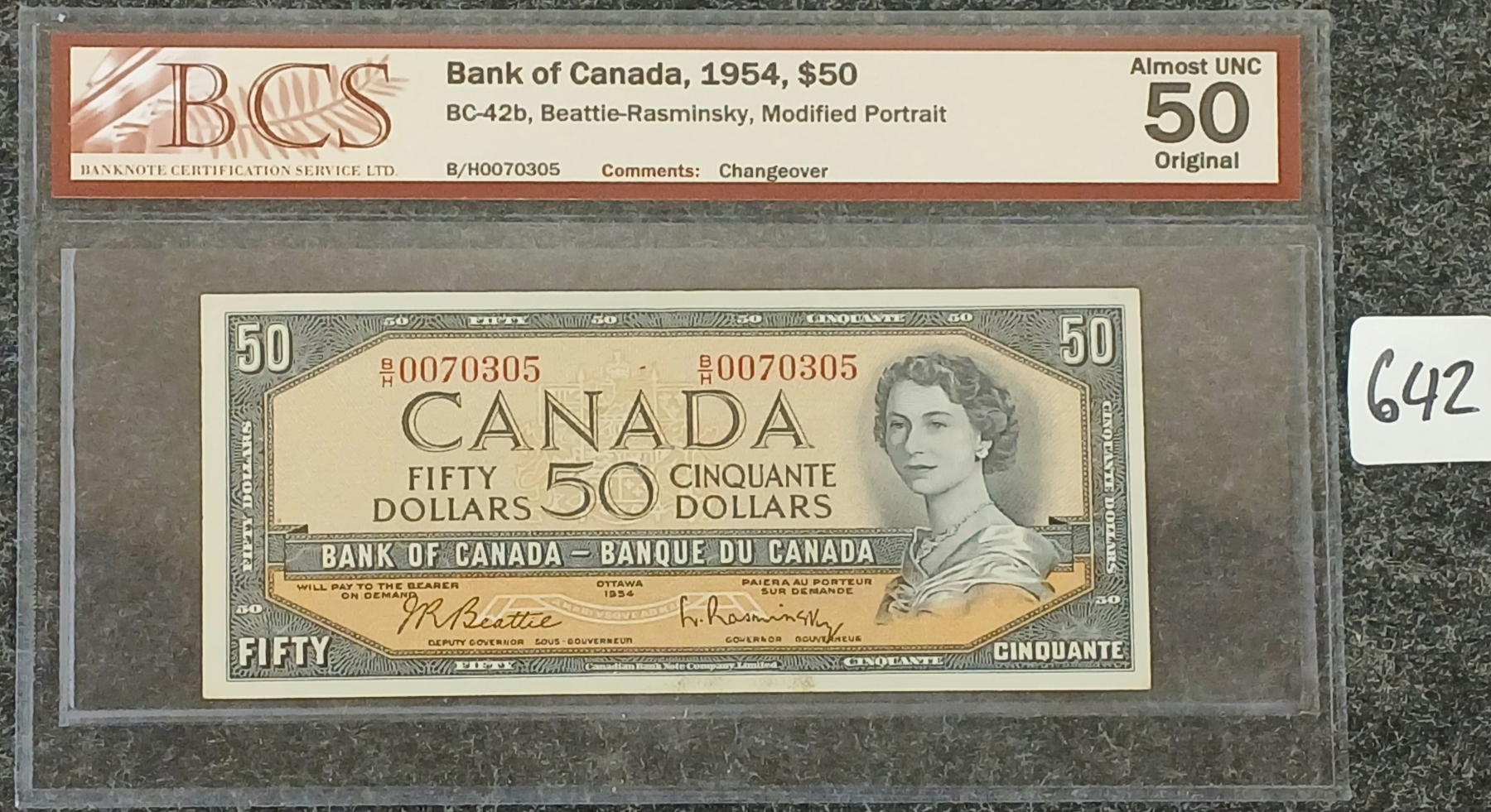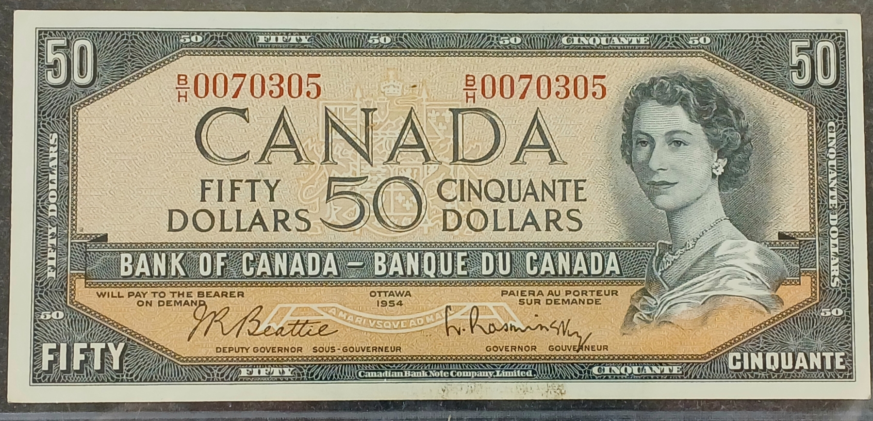 Lot 642 1954 CDN $50 BANKNOTE - BCS GRADED