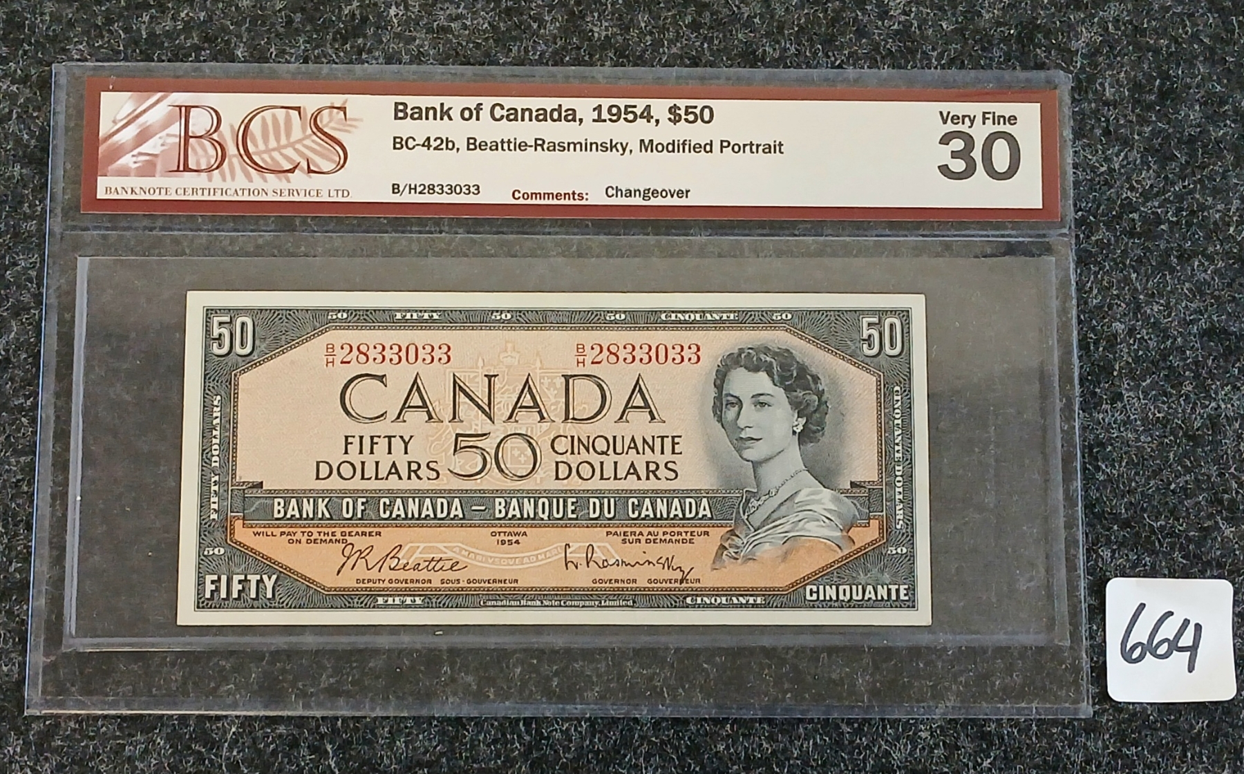 Lot 664 1954 CDN $50 BANKNOTE - BCS GRADED