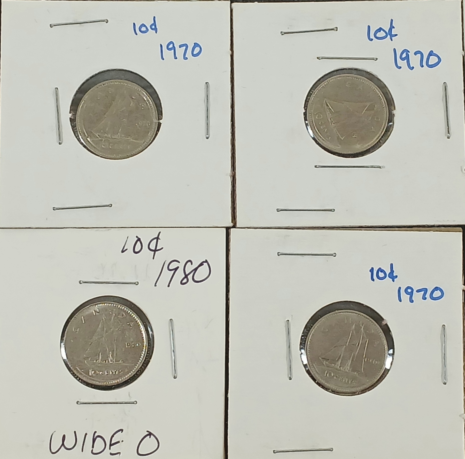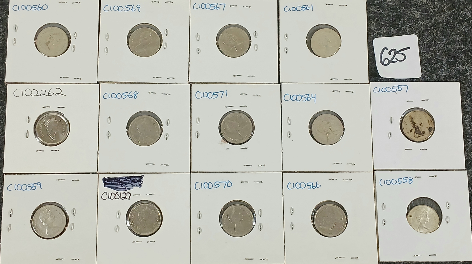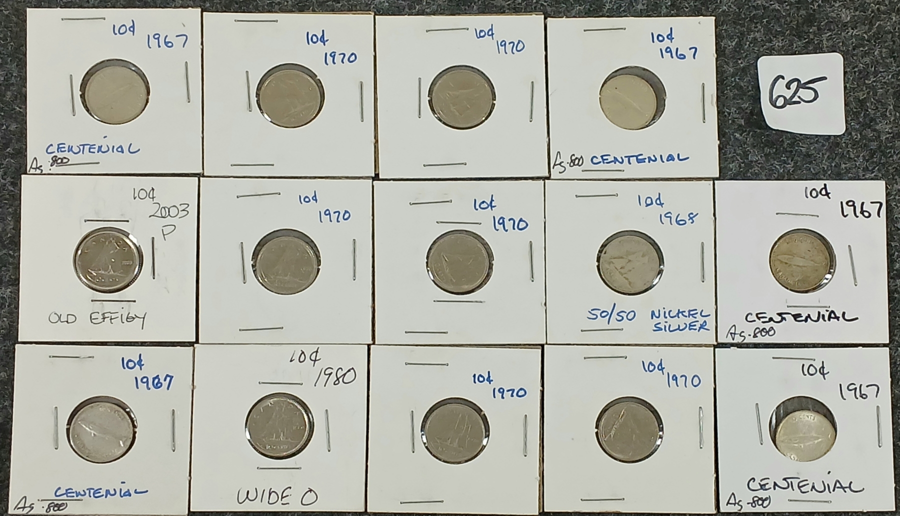 Lot 625 LOT OF 14 - 1967-1970 CDN 10 CENT COINS