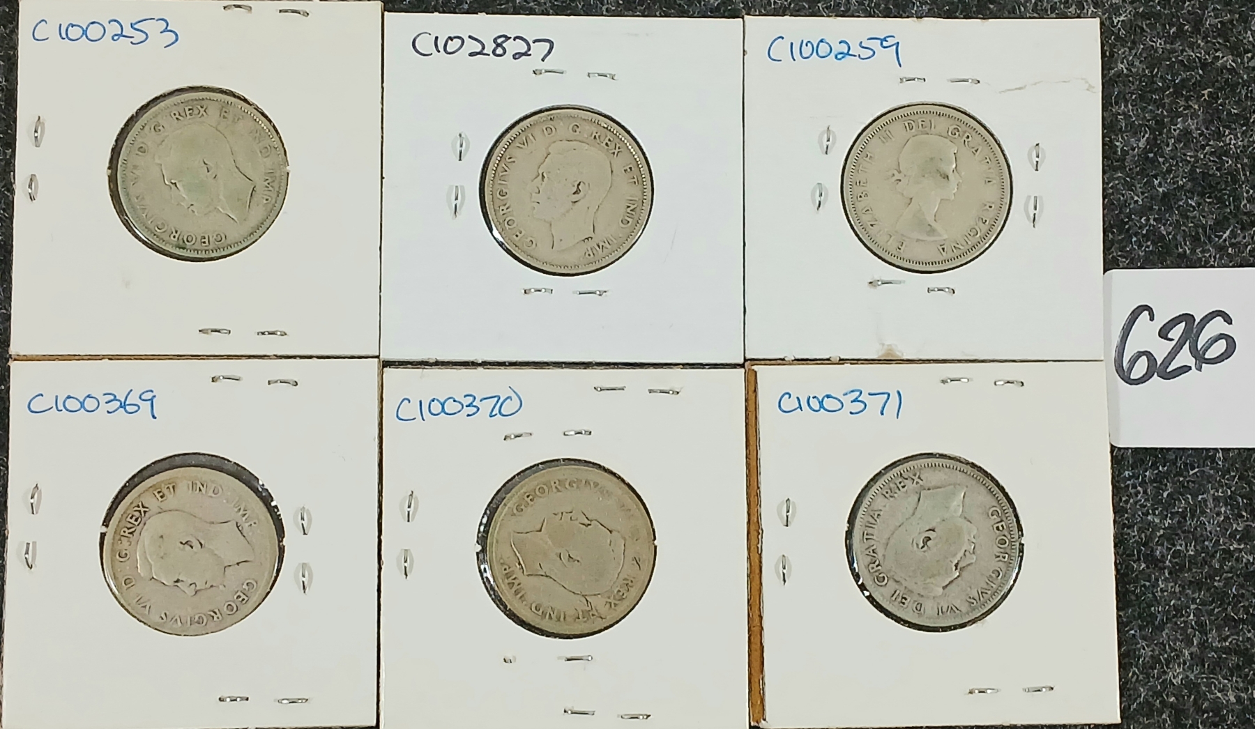 Lot 626 LOT OF 6 - 1937-1953 CDN 25 CENT COINS