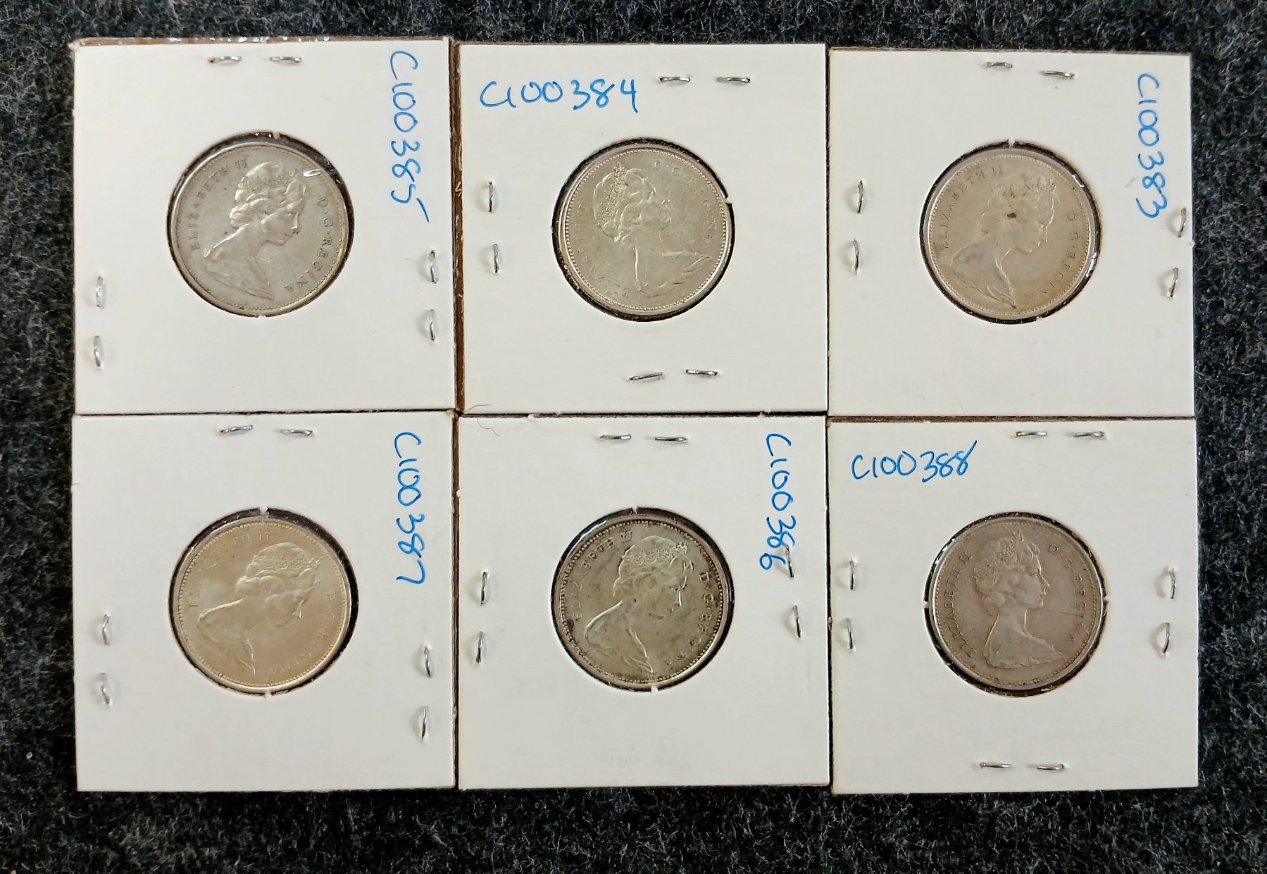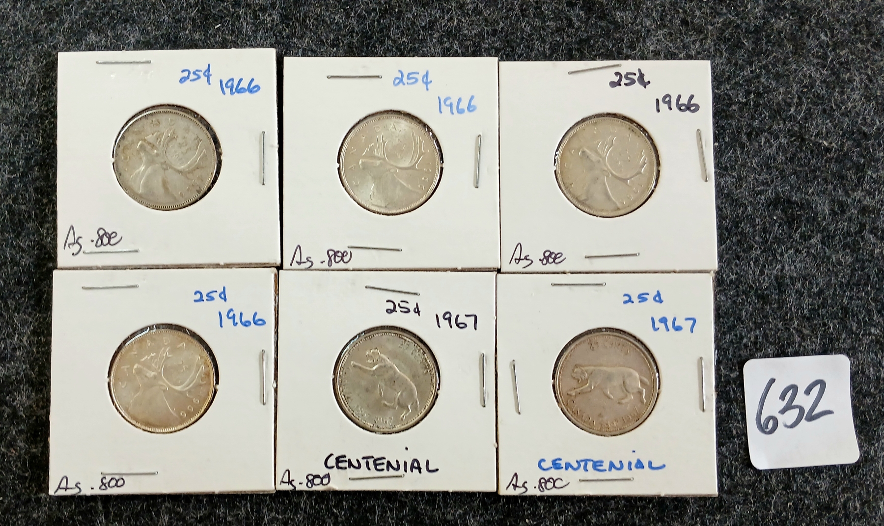 Lot 632 LOT OF 6 - 1966 & 1967 CDN 25 CENT COINS