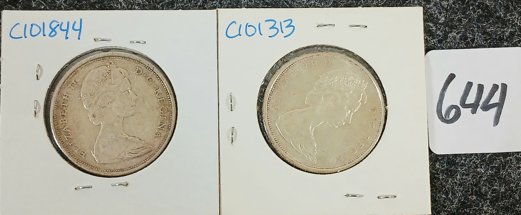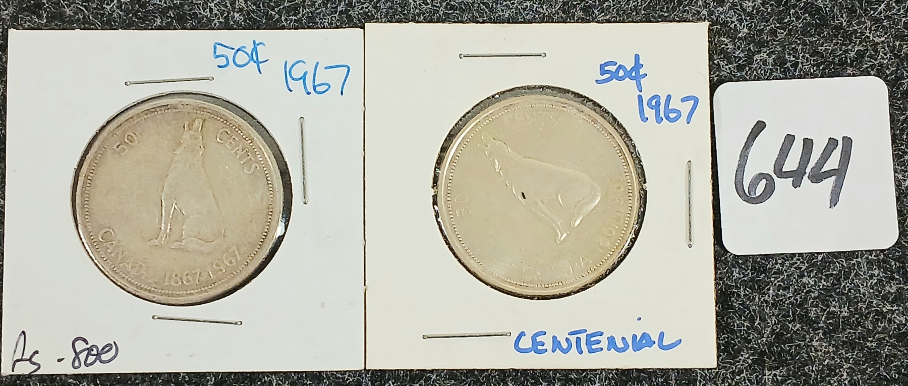 Lot 644 LOT OF 2 - 1967 CDN 50 CENT COINS