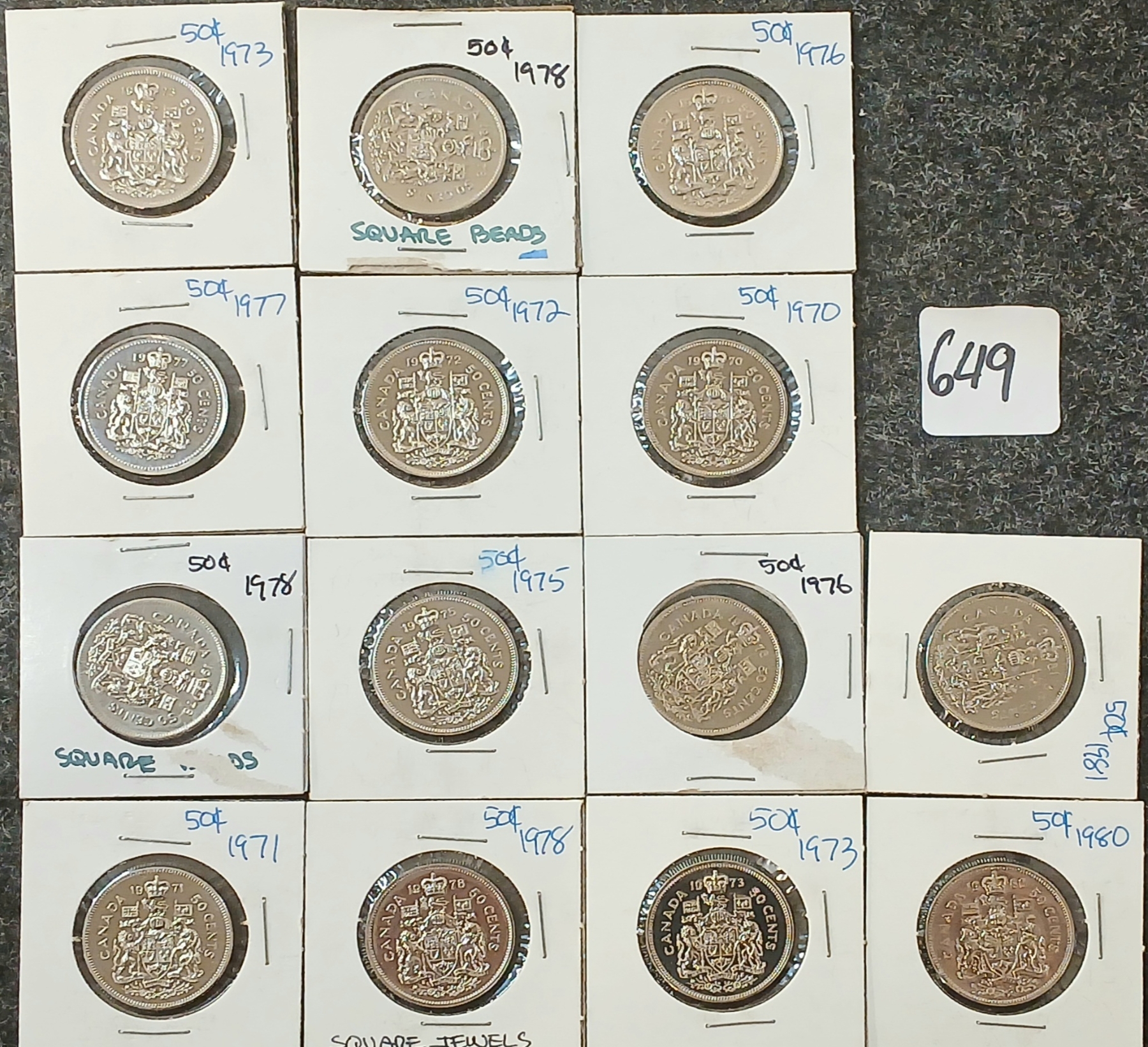 Lot 649 LOT OF 14 - 1970-1981 CDN 50 CENT COINS