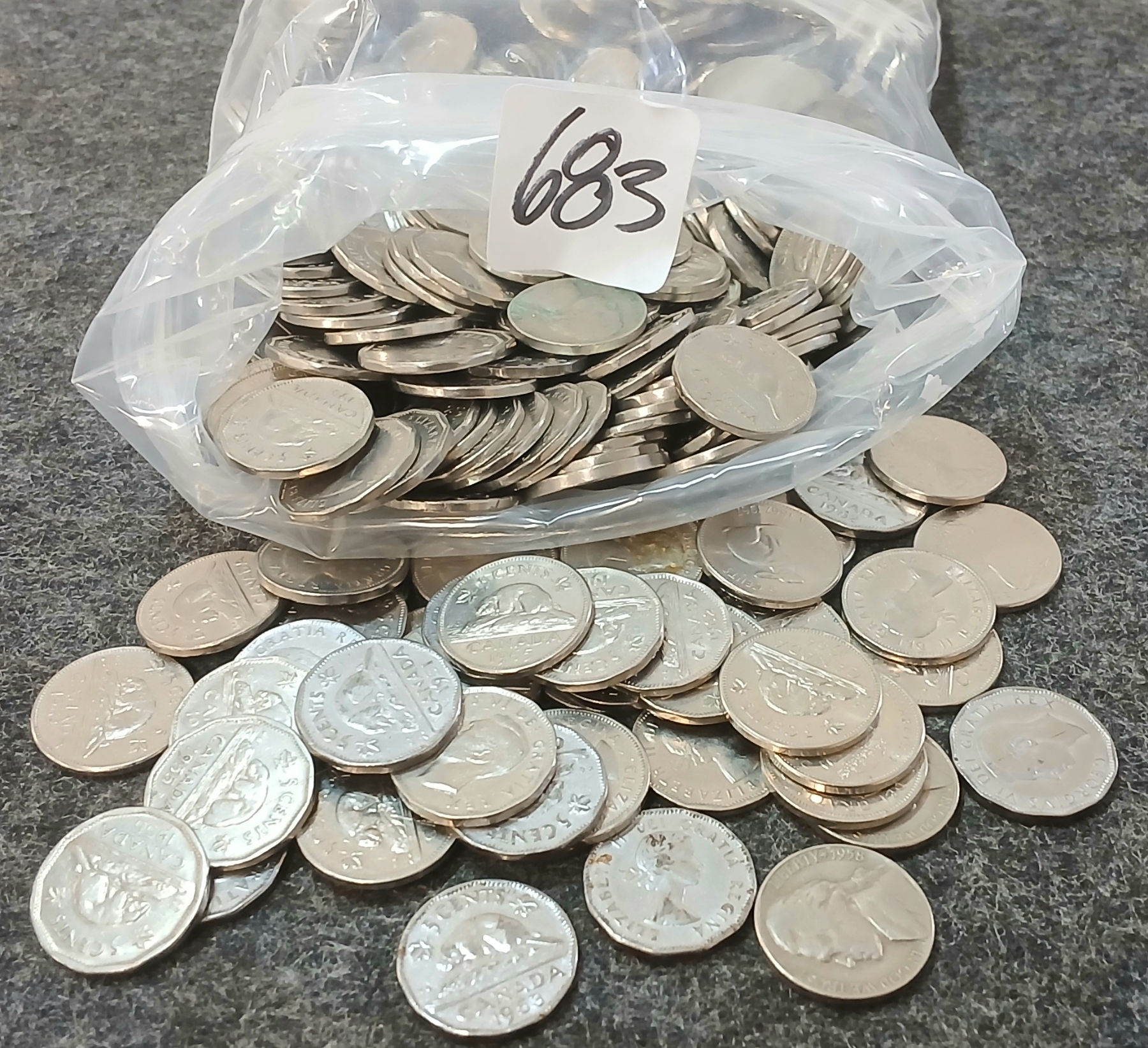 Lot 683 QTY OF 1950-1965 CDN & U.S. 5 CENT COINS