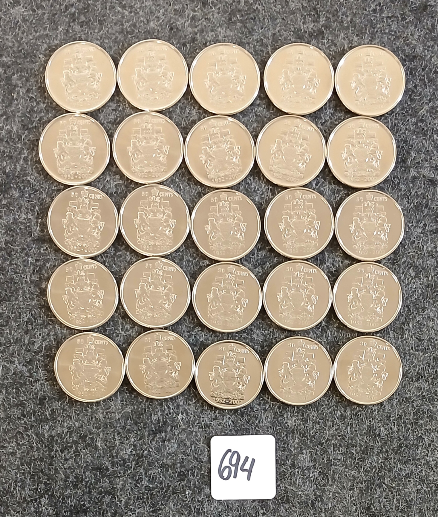 Lot 694 LOT OF 25 - 2002 CDN 50 CENT COINS