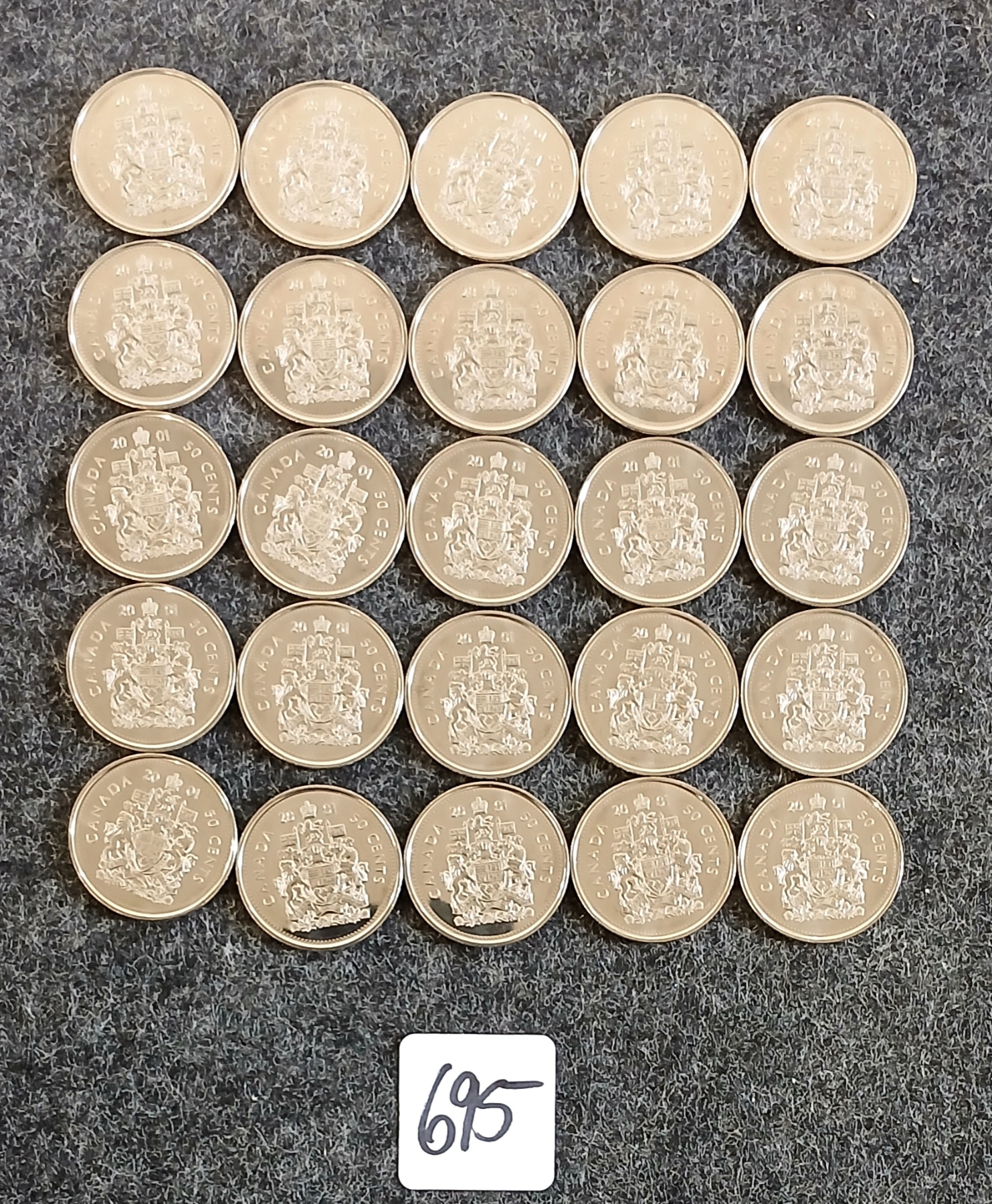 Lot 695 LOT OF 25 - 2001 CDN 50 CENT COINS