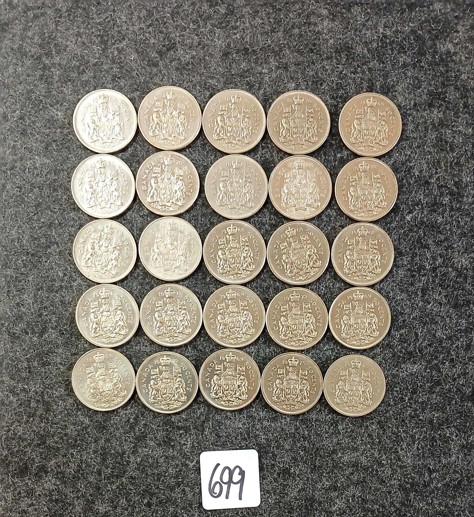 Lot 699 LOT OF 25 - 1968-1976 CDN 50 CENT COINS