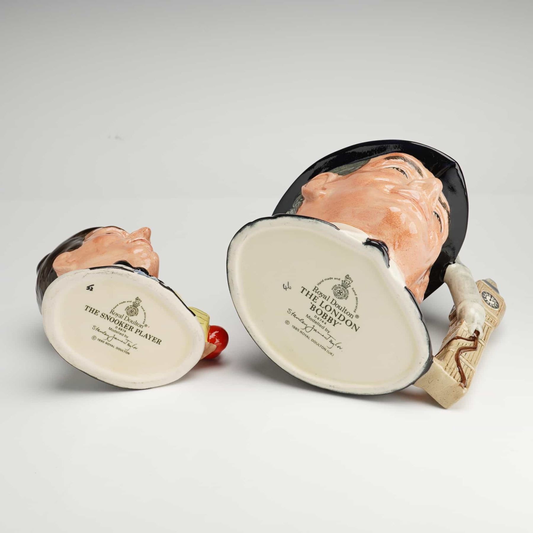 Lot 229 2pc Royal Doulton Character Jugs, The Snooker Player and The London 'Bobby'
