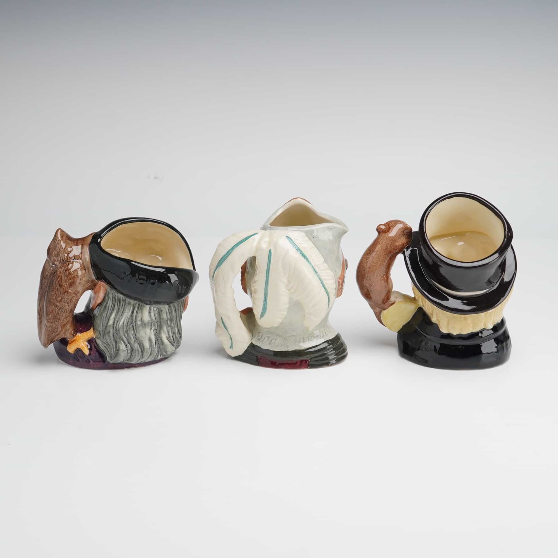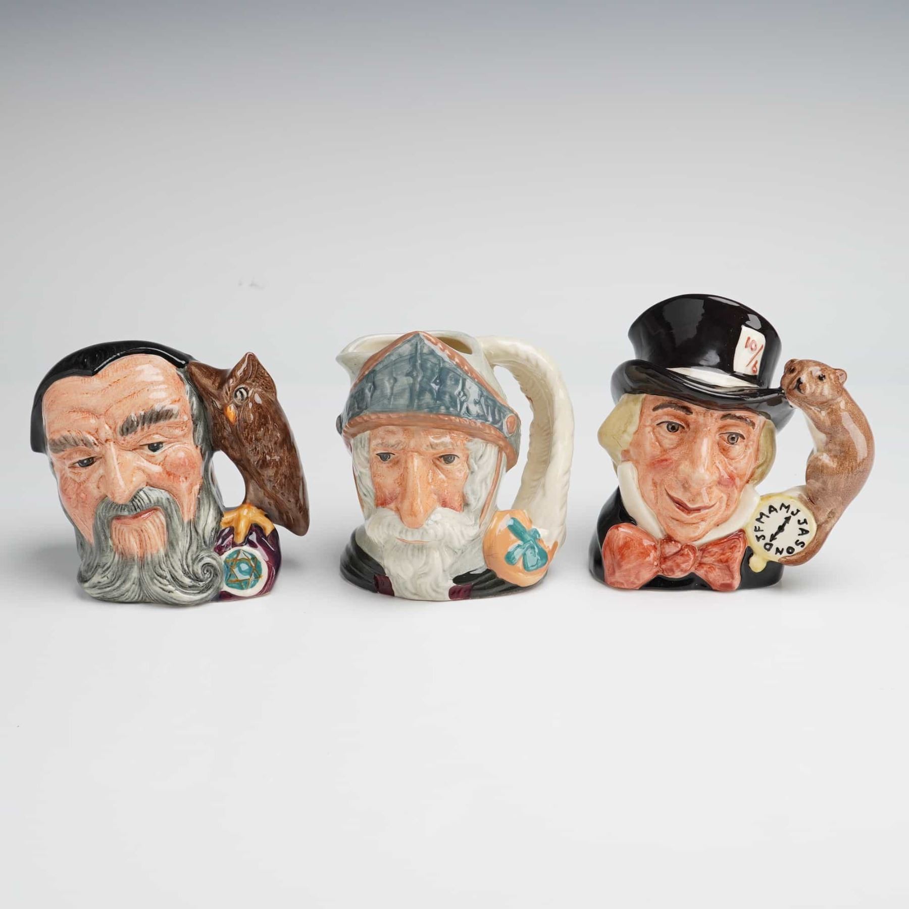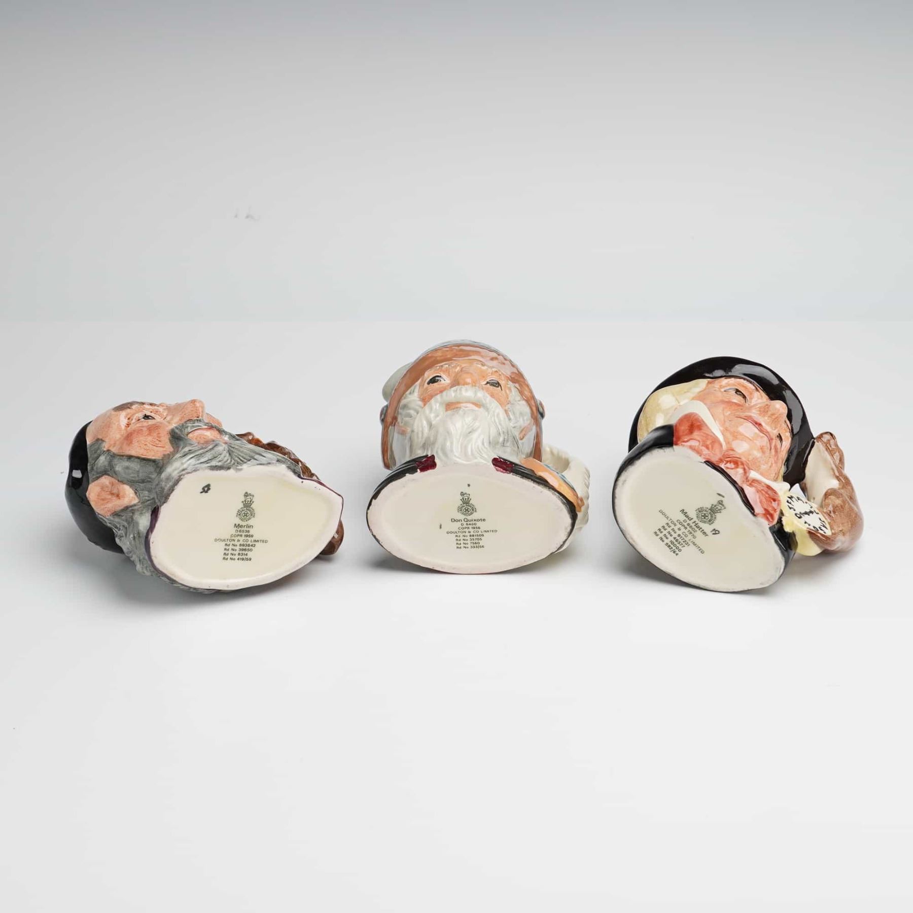 Lot 238 3pc Royal Doulton Character Jugs, Merlin, Don Quixote, and Mad Hatter