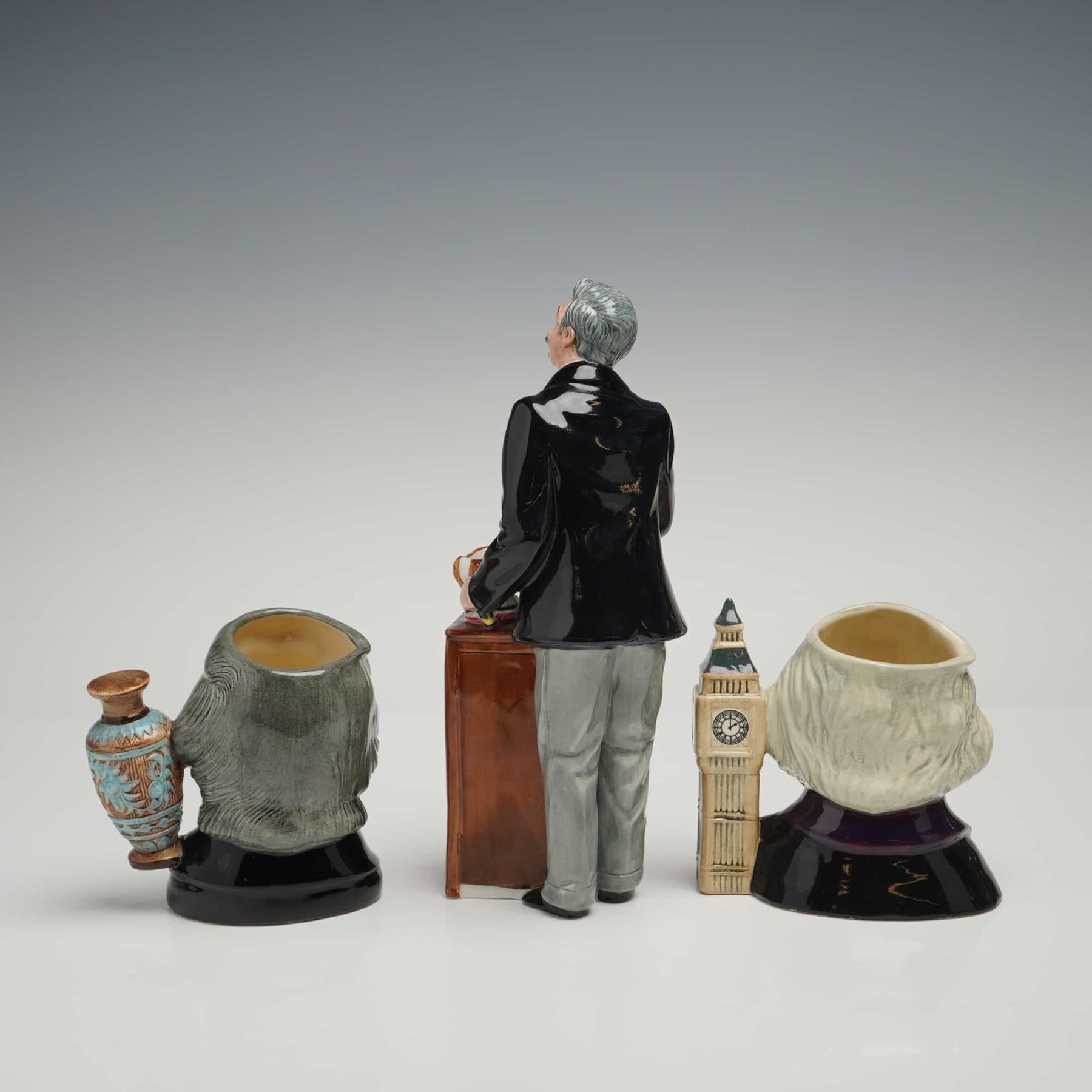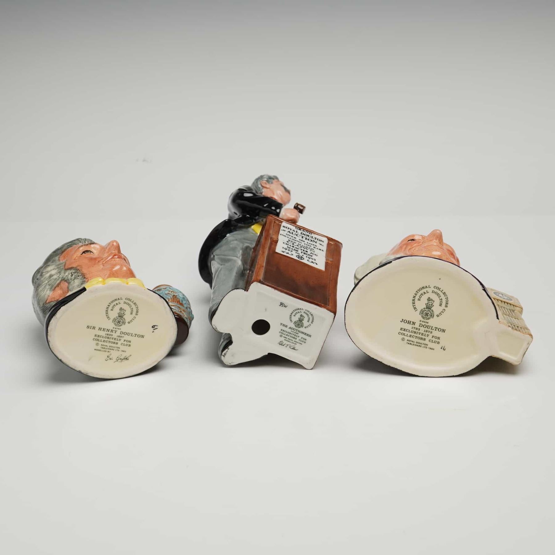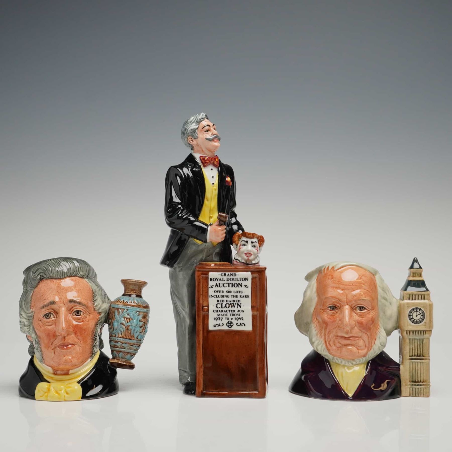 Lot 239 3pc Royal Doulton Figurine and Character Jugs, The Auctioneer, Sir Henry Doulton, and John Doulton