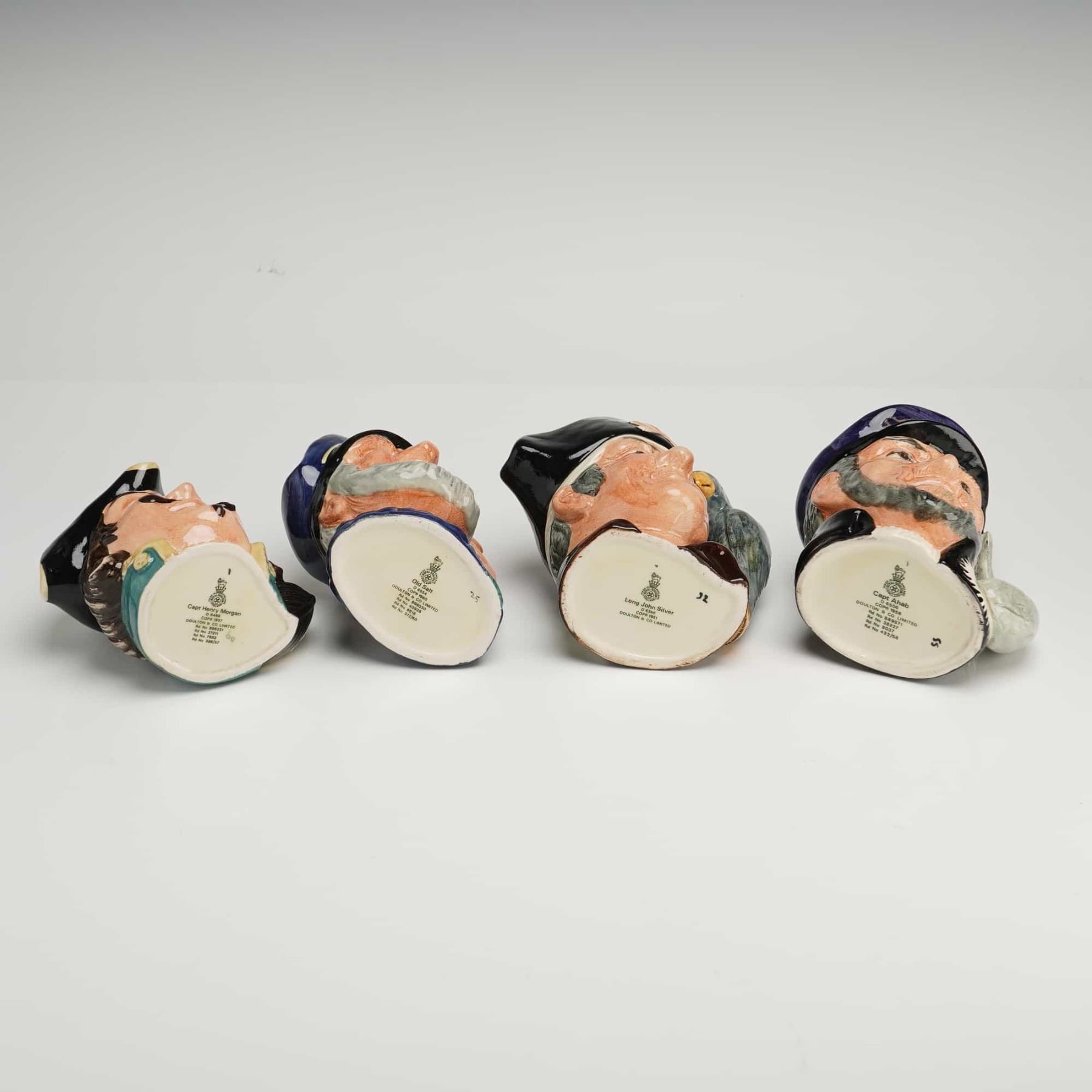 Lot 242 4pc Royal Doulton Character Jugs, Capt Henry Morgan, Old Salt, Long John Silver, Capt Ahab
