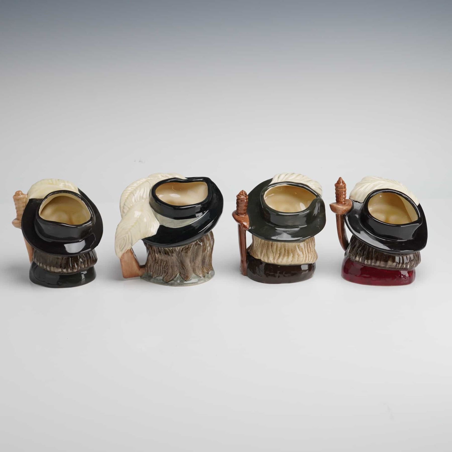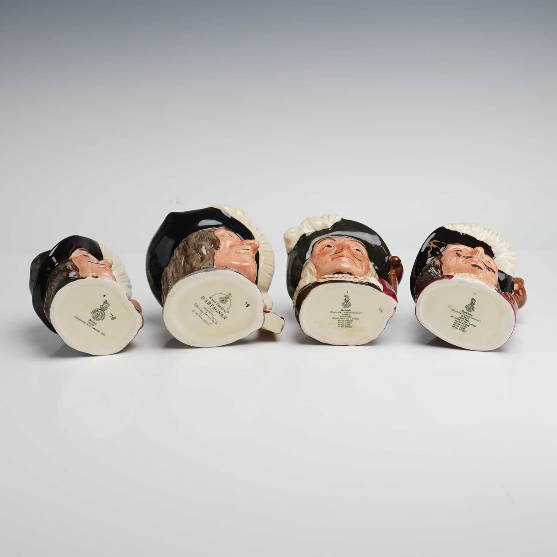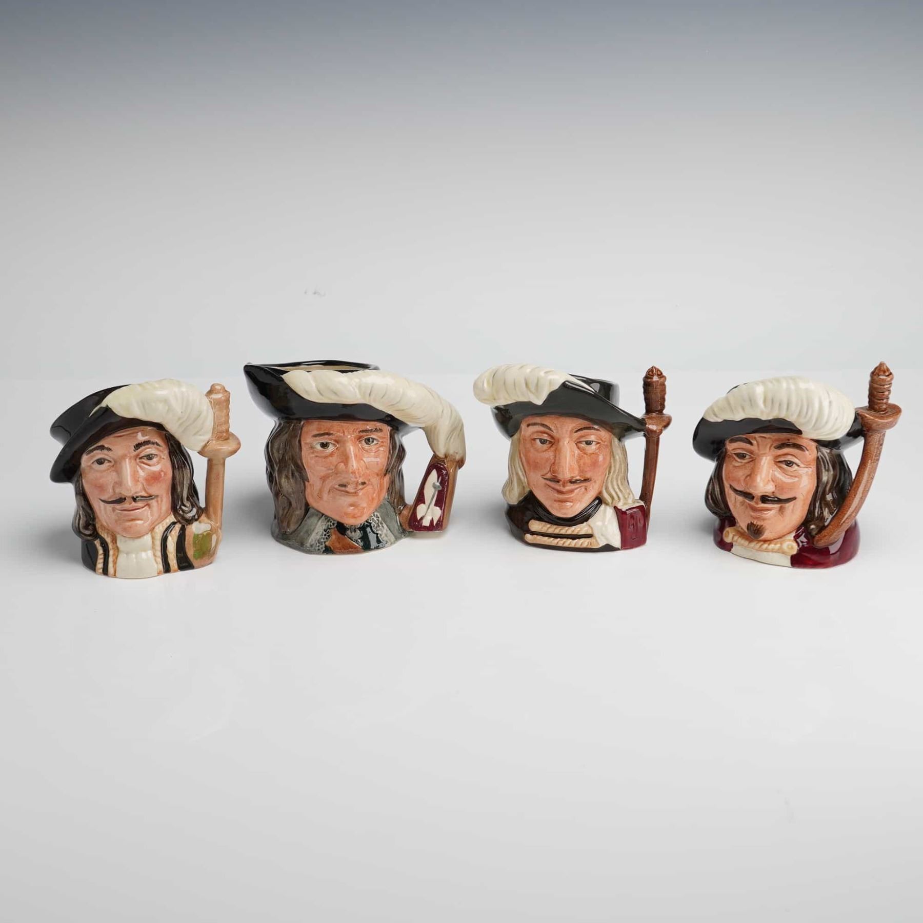 Lot 250 4pc Royal Doulton Small Character Jugs, Athos, Aramis, Porthos, and D'Artagnan